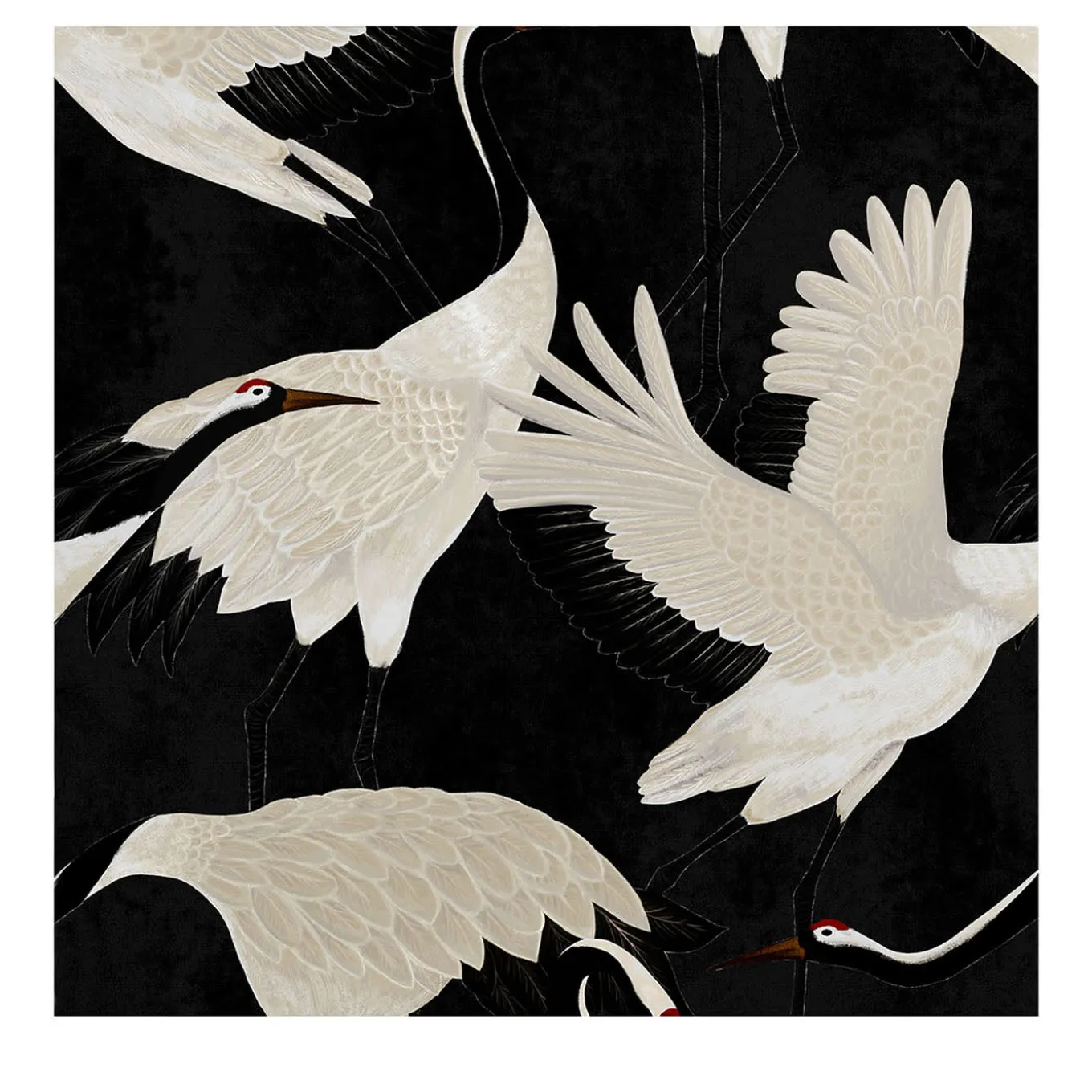 The wallpaper is made from 100% ecological paper, printed with vegan, water-based inks, and free from chemicals and solvents. Each package contains eight sheets. Inspired by 18th-century English tradition and printed in Italy, it’s perfect for walls, shelves, and furniture. This wallpaper features a Japanese-style design, with herons set against a striking black background. The price refers to one package containing 8 sheets of premium wallpaper. Each sheet measures 27.5 x 39.4 inches (70 x 100 cm), for a total coverage of 59.2 sq. ft. (5 mq).