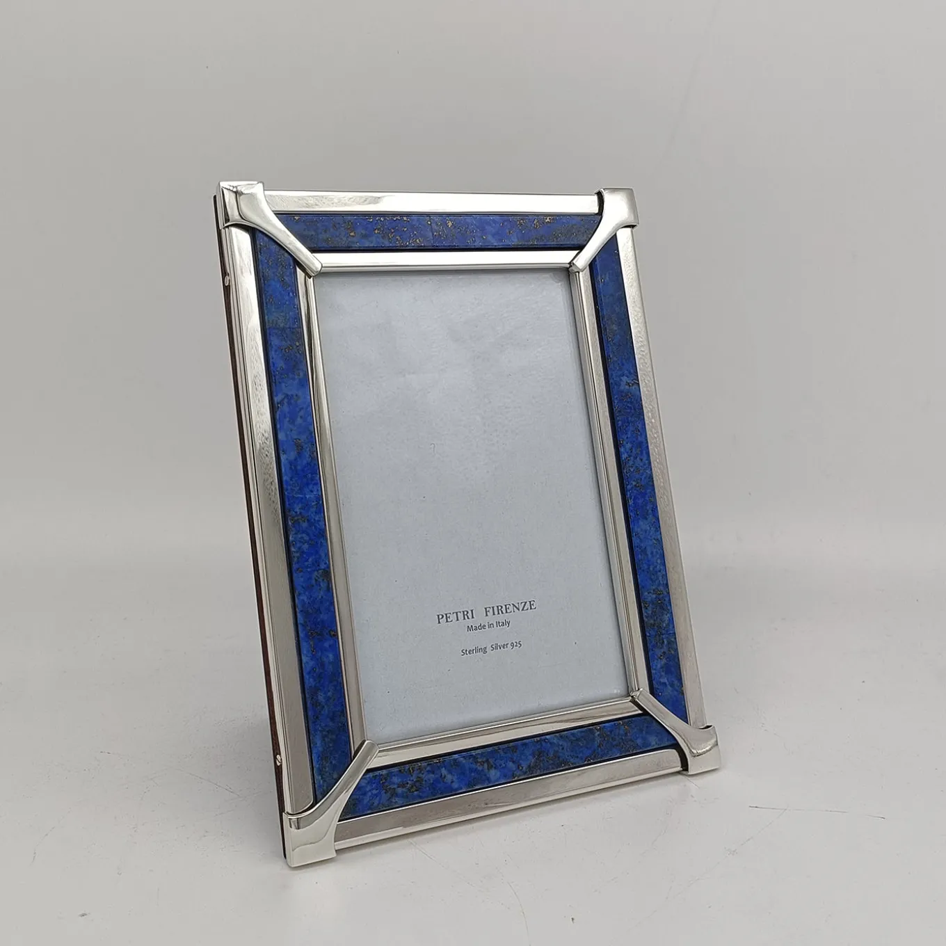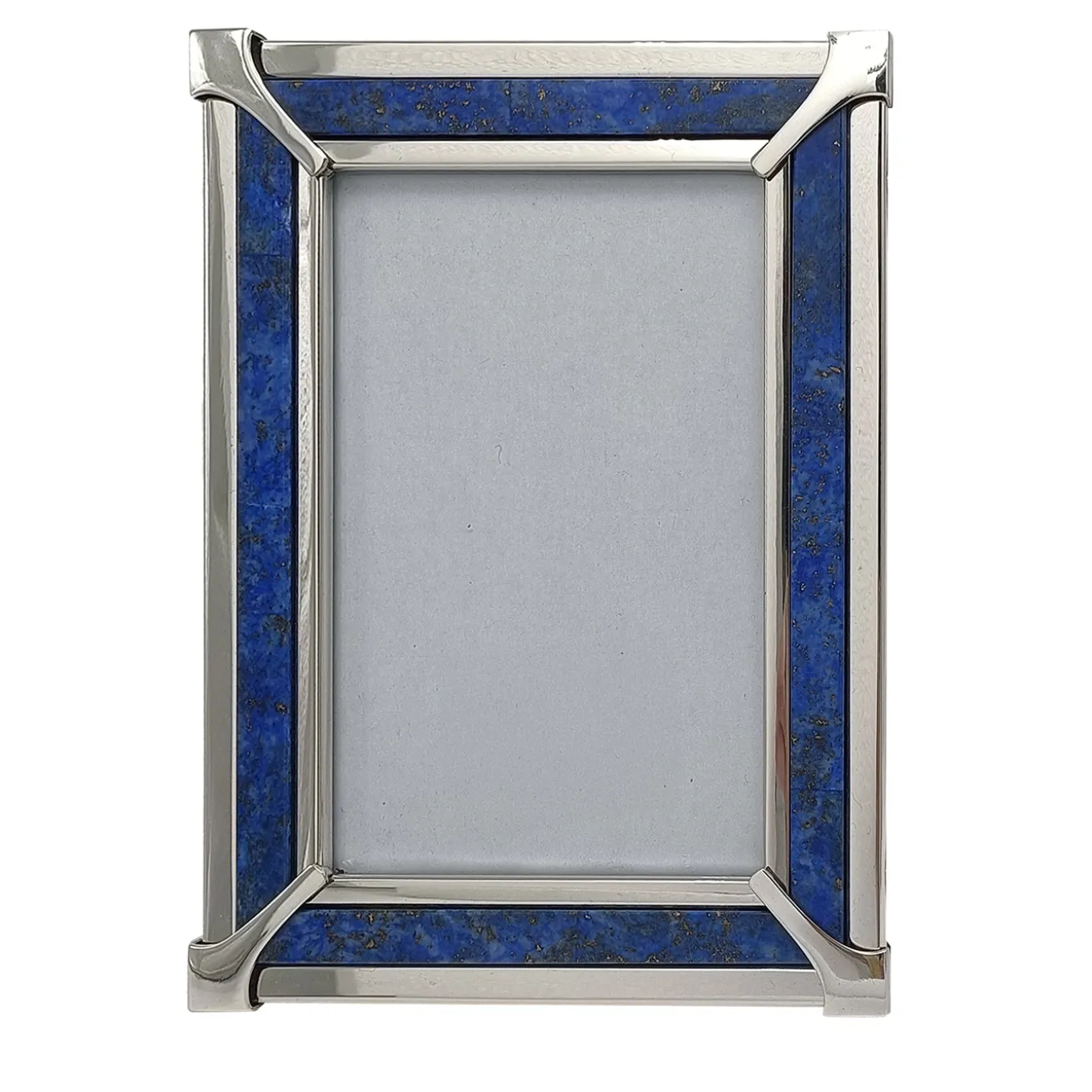 Crafted with a sleek 925 silver structure, this picture frame is adorned with rich blue Lapis Lazuli gemstones. The contrast between the polished silver and the intense blue tones lends the piece a timeless elegance, making it a versatile addition to any interior. Designed to fit photographs measuring 9.5 x 14.5 cm, with larger sizes available upon request. For more information, please contact our concierge.