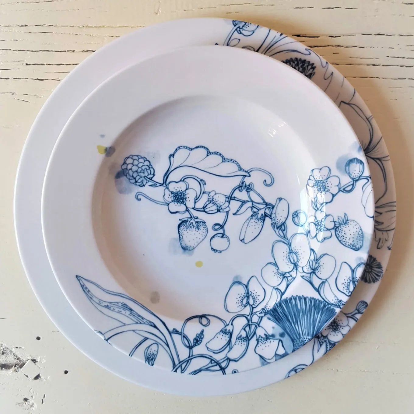 The “Blue Summer Collection” is a contemporary reinterpretation of the traditional white and blue Delft porcelains. Its motifs are an elegant balance of wild fruits and flowers into a fresh exquisite ornamental design. The smooth tones of blue with some highlight touches of yellow gave a contemporary twist to all the designs. Each design varies slightly due to the manual techniques used in their manufacturing. Oven and dishwasher are safe.