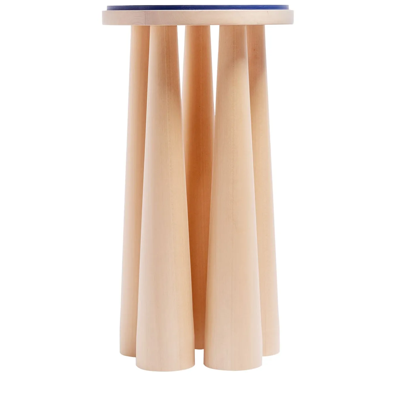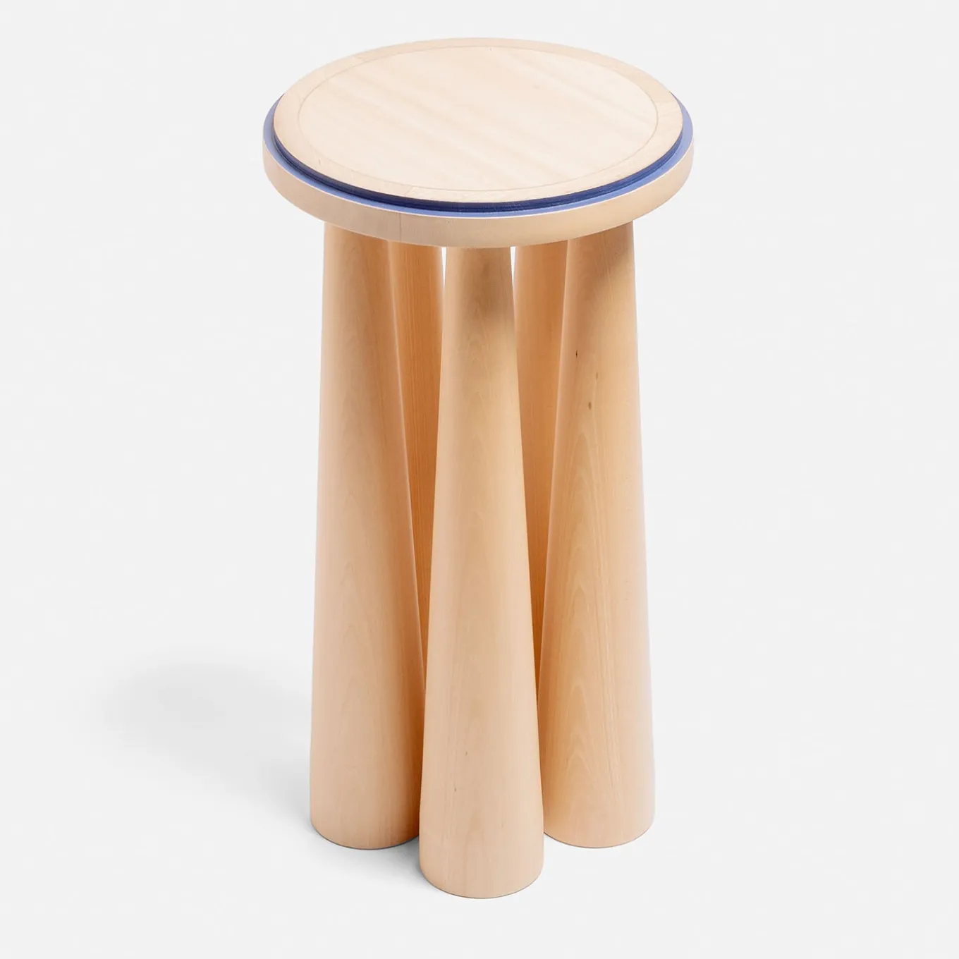 The Bogdan collection is born from a single trunk of linden wood, generated by one specific element. A mono-materic piece of furniture, characterized by a distinguished color line that defines its perimeter and shape. The cones at the base, arranged in circle to create a single visual element, support the top that is configured as the unifying part of what raises it. The colored milled-edge ribs, embellish and complete the top, creating, together with the legs, plays of chiaroscuro all around.