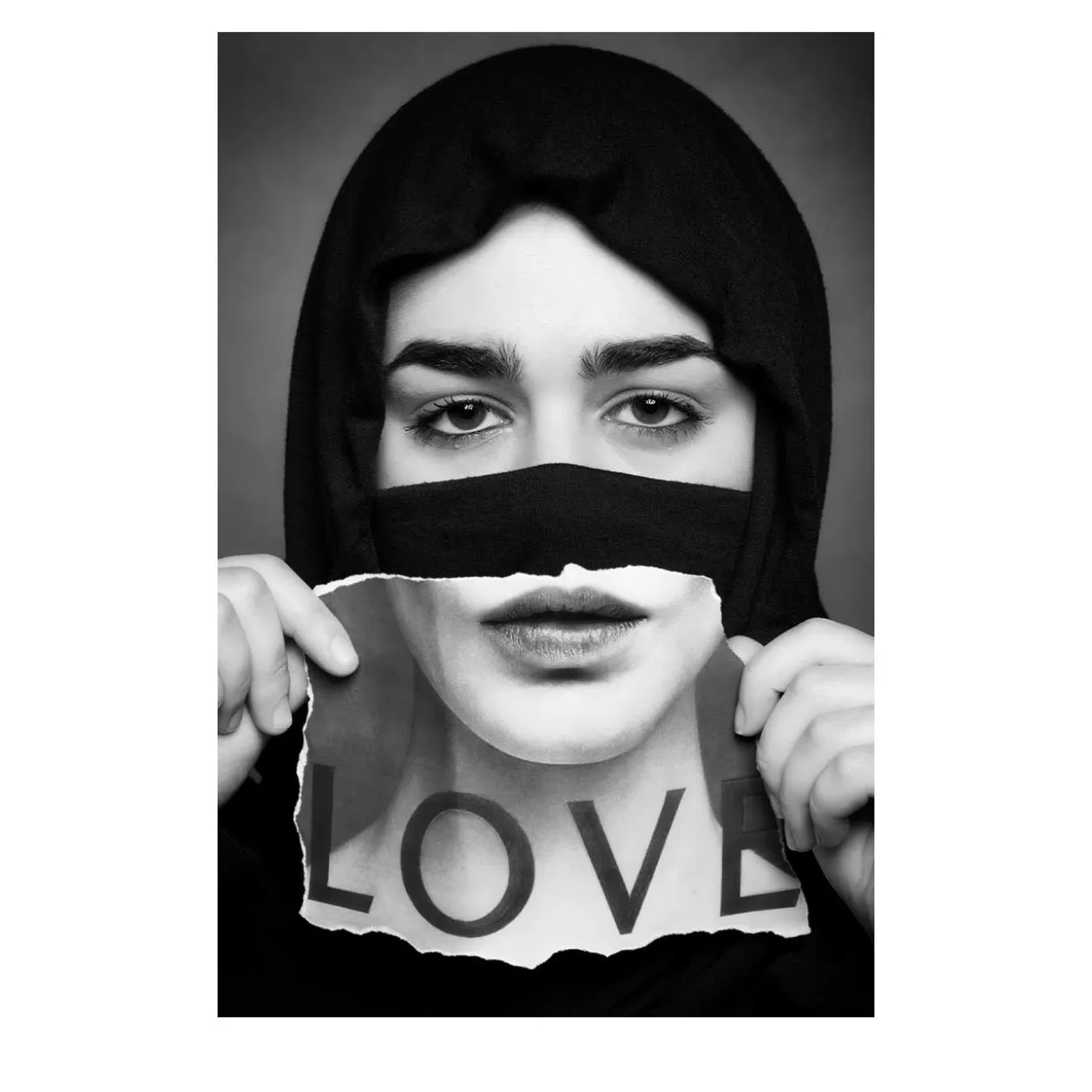 A woman whose face’s lower half is overlapped by clippings torn from a fashion magazine is the subject of this superb shot by Alberto Alicata. Part of a project including women of different ethnic groups, it actualizes the contrast between stereotypes and common faces, inviting one to embrace an increasingly unconventional and indeed more authentic vision of beauty. Contact the Concierge for the frame’s availability and pricing.