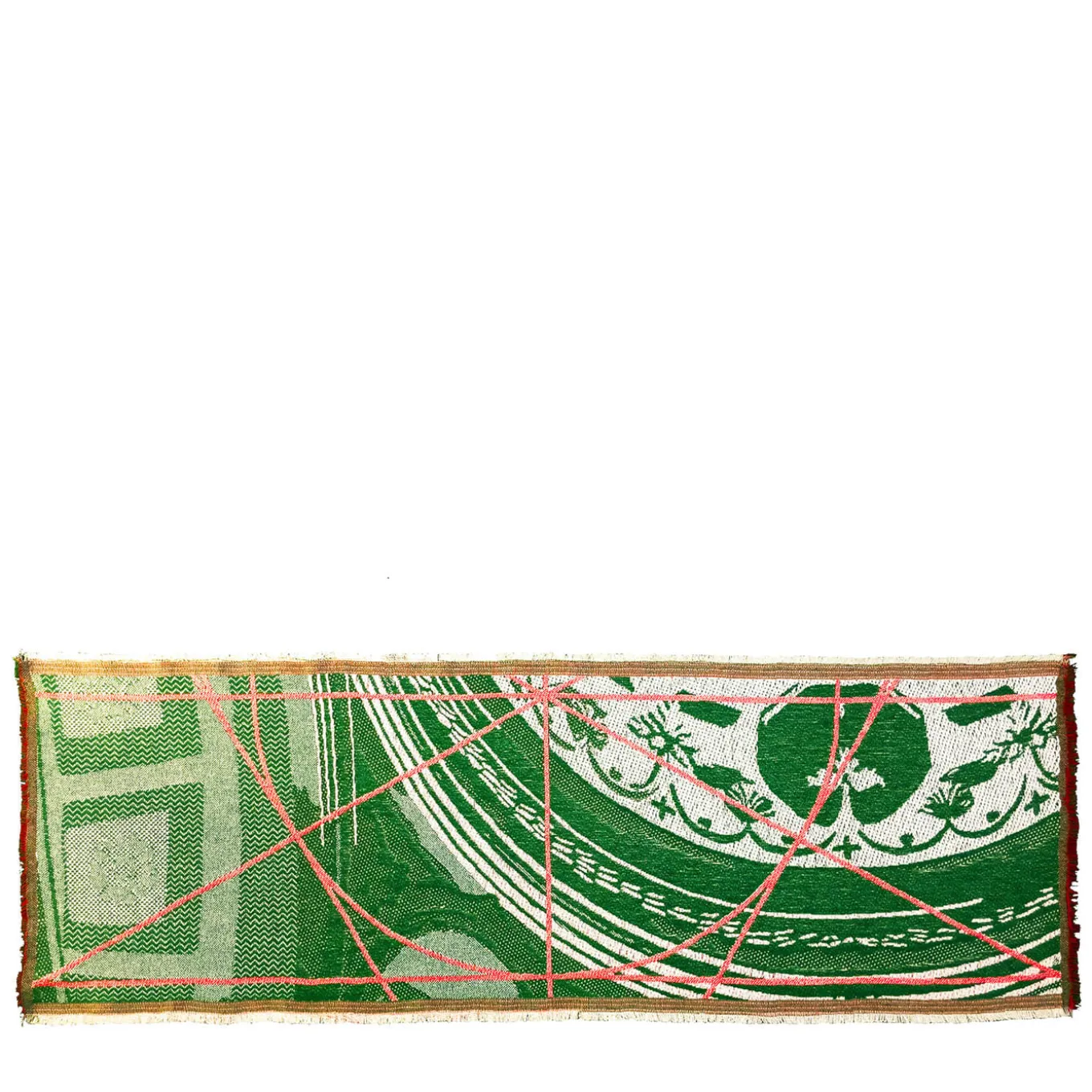 Drawing inspiration from Borromini’s architectural mastery, this runner captures the essence of Roman elegance. Jacquard-woven in luxurious frisé linen, cotton, and fine wool, it features rich pine green tones intersected by bold cherry red lines. The intricate pattern evokes the geometric rhythm of Baroque domes, while the double-sided weave offers versatility. Measuring 145cm x 50cm, this runner adds a striking visual element to any console or table. Available in various color options.