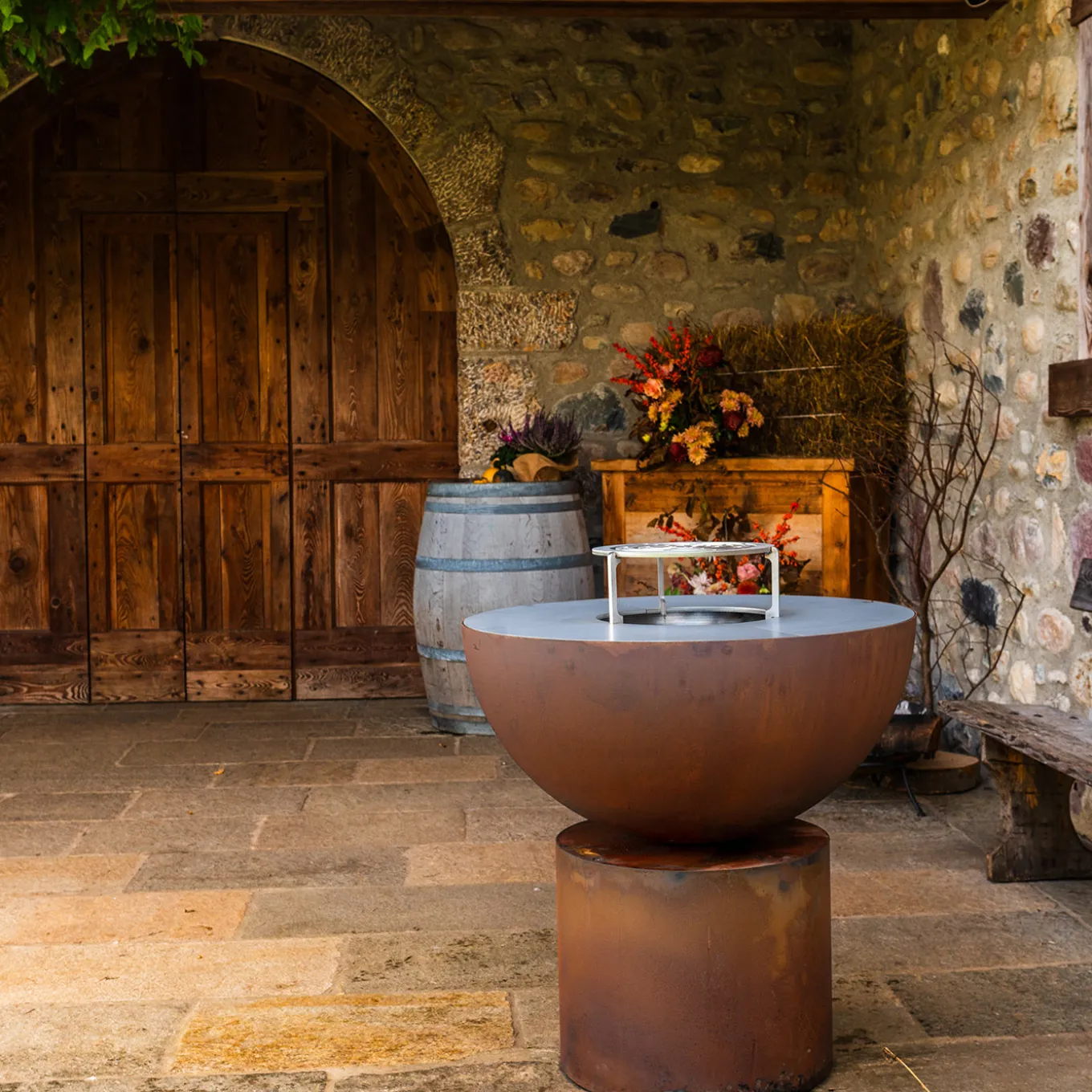 Primula barbecue features a robust and elegant base that highlights its iconic half-sphere design. With clean lines and a timeless appeal, it enhances outdoor spaces by creating a focal point that merges aesthetics with practicality. The spherical shape symbolizes unity and warmth, evoking the traditional communal fire, while the high-quality craftsmanship ensures excellent cooking performance. An exploded view of the product is available upon request.