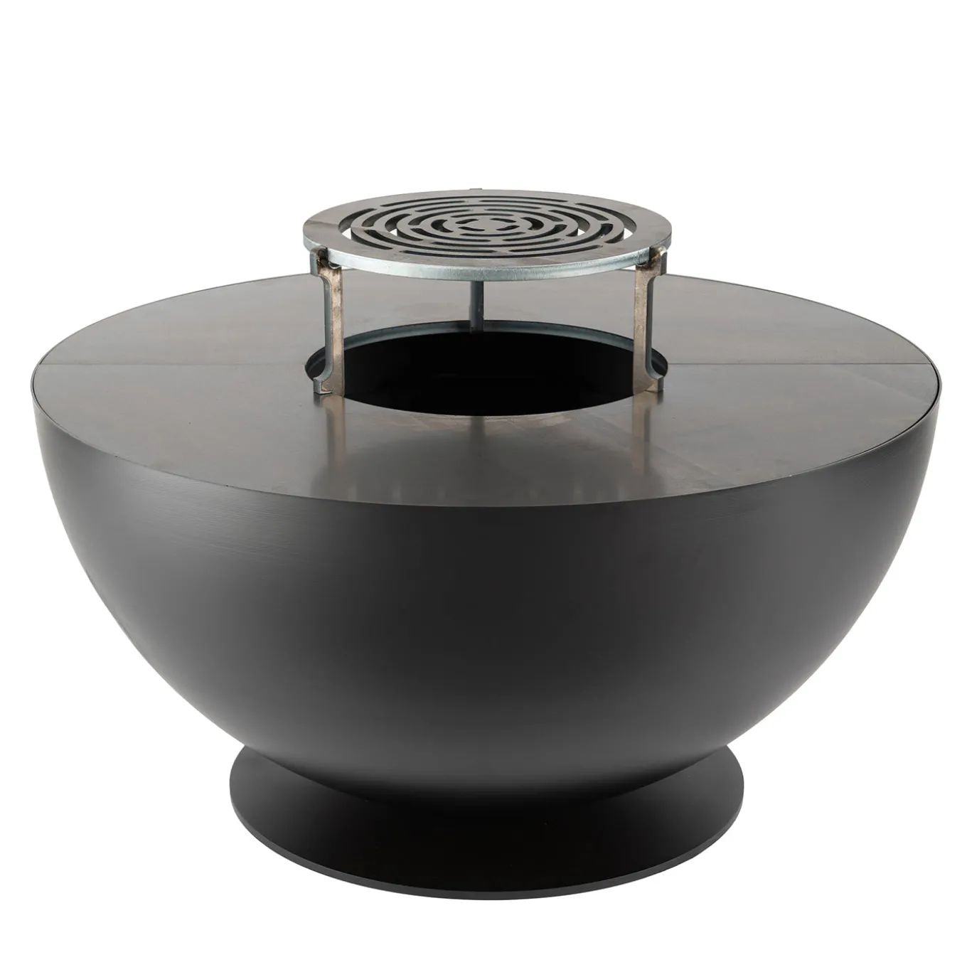 Tulipano barbecue combines minimalist design with functional elegance. Its flat base ensures stable placement on even surfaces, minimizing wobble or tilt. The low-profile silhouette emphasizes harmony with outdoor surroundings, creating an intimate and inviting atmosphere reminiscent of traditional hearths. Designed to encourage social gatherings, it offers a central point of warmth and light. Finished in high-temperature black paint, it balances style and practicality for refined outdoor living. An exploded view of the product is available upon request.