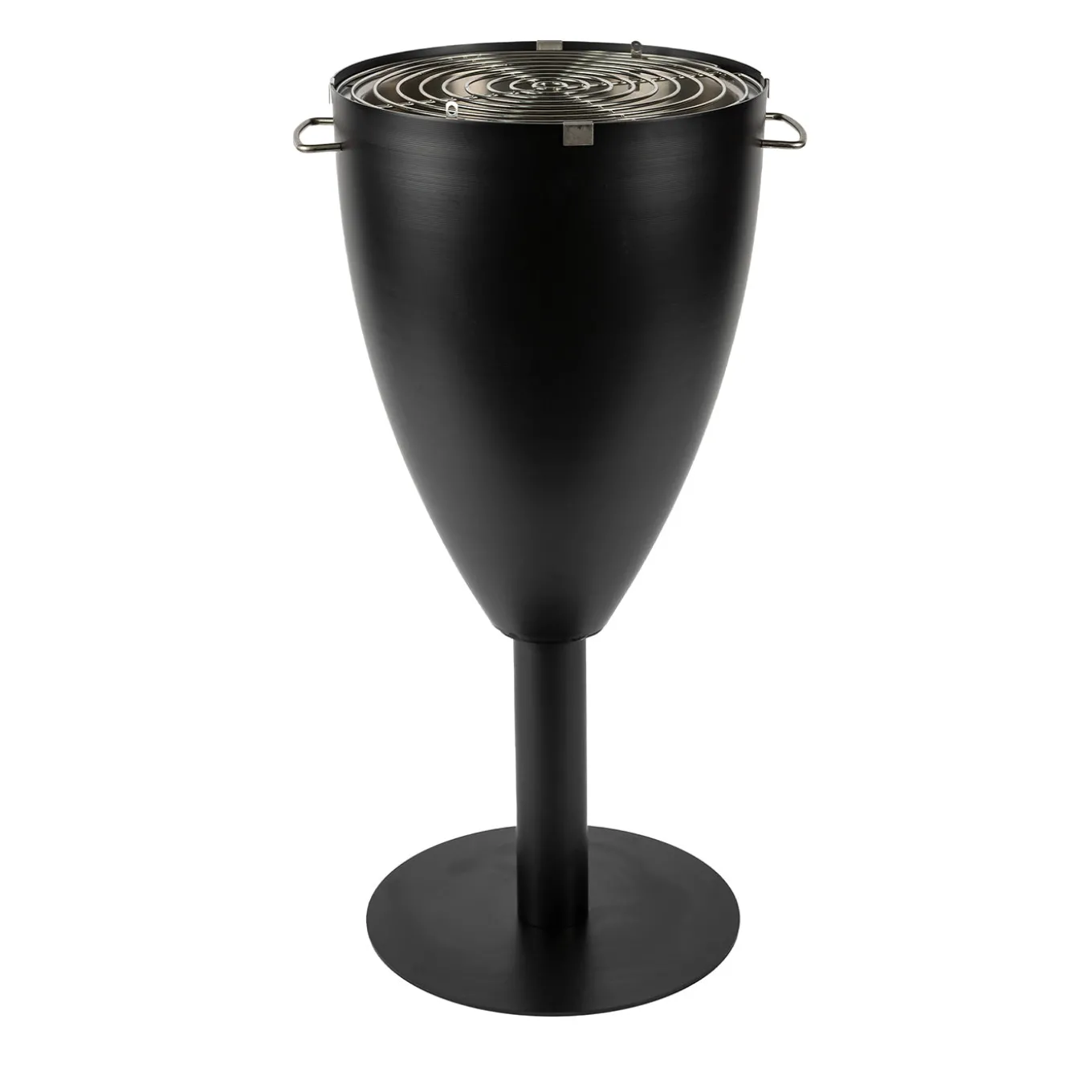 Calice barbecue features an elegant, original design with a high-temperature black steel finish. Intended for use with charcoal, it includes a stainless steel inner container for enhanced durability and easy cleaning. Its versatile design allows it to function also as a practical ashtray or stylish ice bucket, making it suitable for various outdoor settings and family gatherings. An exploded view of the product is available upon request.