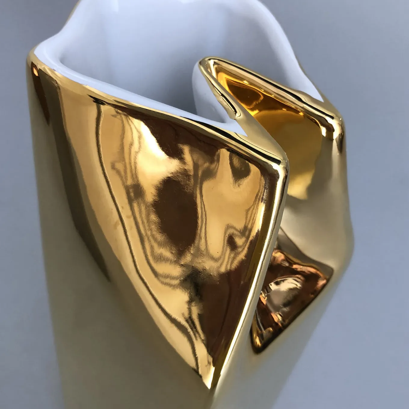 Go nostalgic with the Bricco Brass Terracotta Carafe. Inspired by the first tetra pack milk cartons, the carafe can be used with both hot and cold beverages. In white terracotta, the carafe is coated in white enamel and a brilliant brass tone before the last firing. The carafe can be personalized with a short sentence on the bottom.