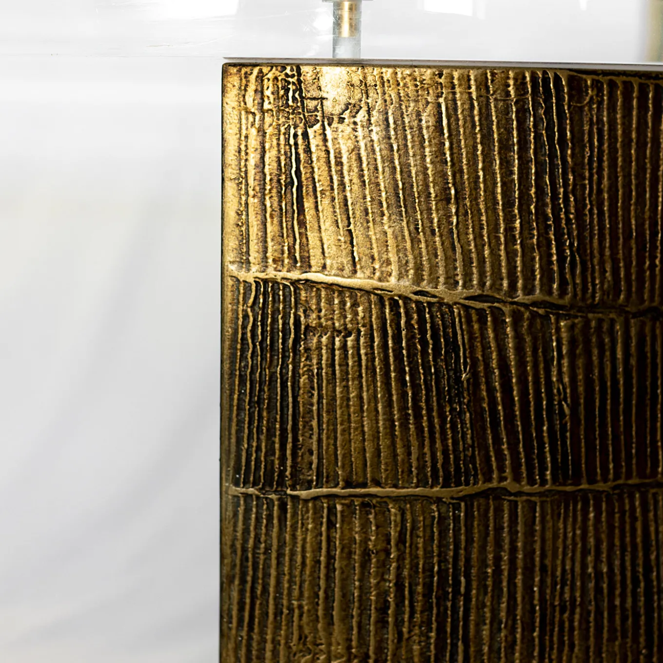 This desk features a transparent plexiglass top supported by two distinctive semicylindrical legs with a textured bronze finish. The irregular pattern on the legs adds a sculptural, artistic quality that defines the piece’s bold style, reflecting BottegaNera’s style. Dimensions can be customized to fit various spaces, making it a versatile choice for those seeking a statement piece with both function and modern design.