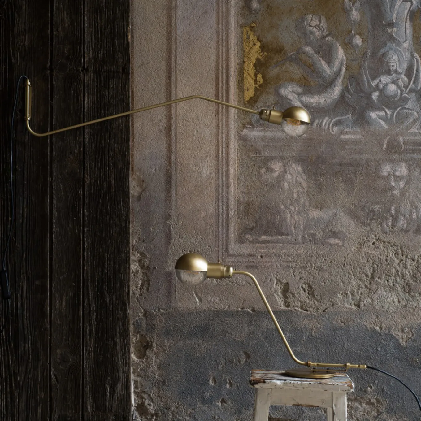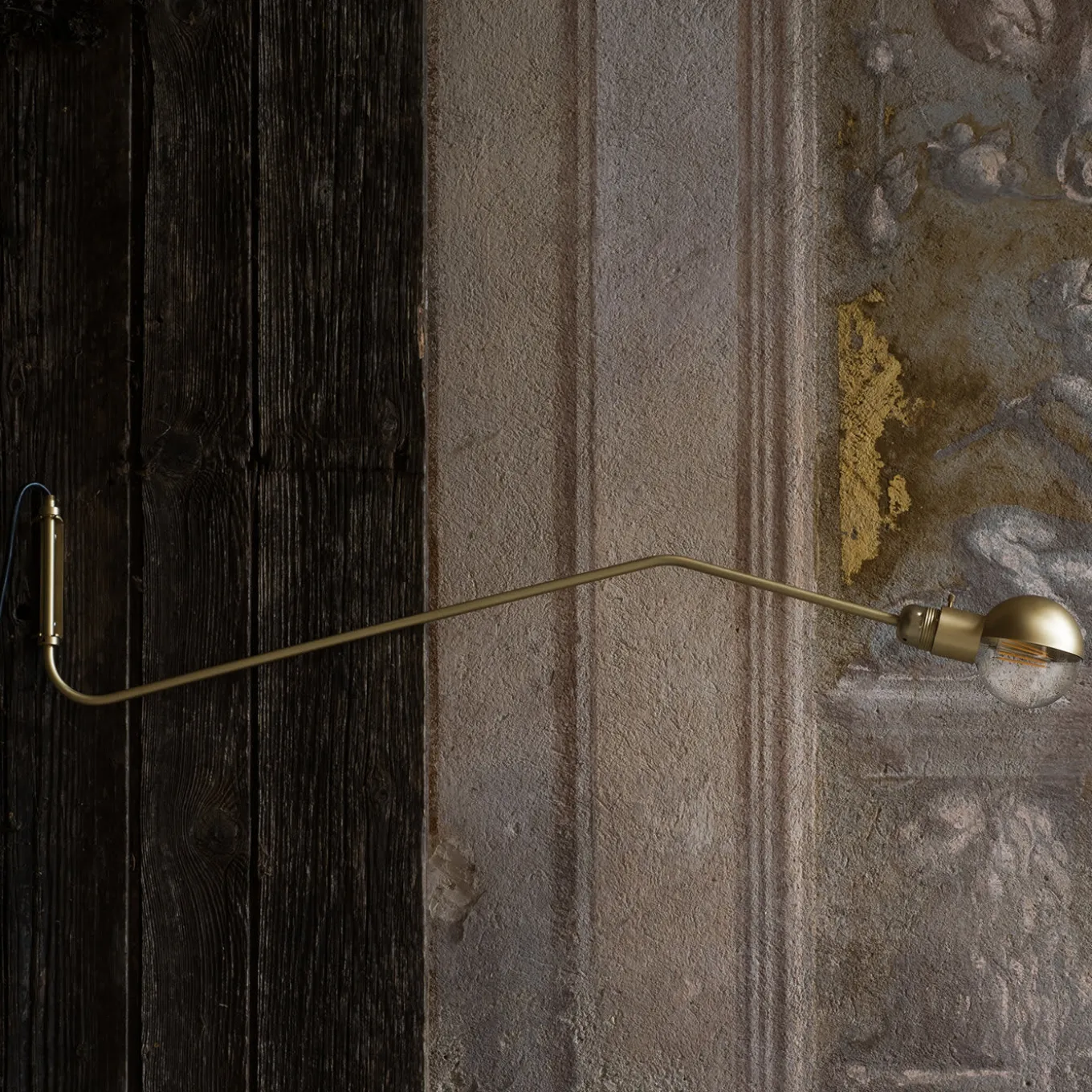 Restart Milano is an italian brand that creates a unique pieces. This collection is created by Maurizio Navone. Wall Lamp Short is a very minimalistic and elegant wall lamp that is produced in the highest quality. Brass wall lamp with 180° swerving arm, folded and contoured metal sheet hanging glide, adjustable light direction, dimmer, LED light bulb, 2700K light temperature.