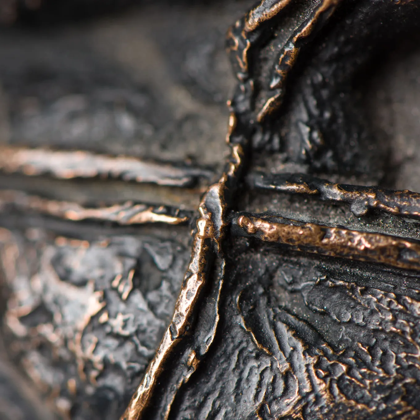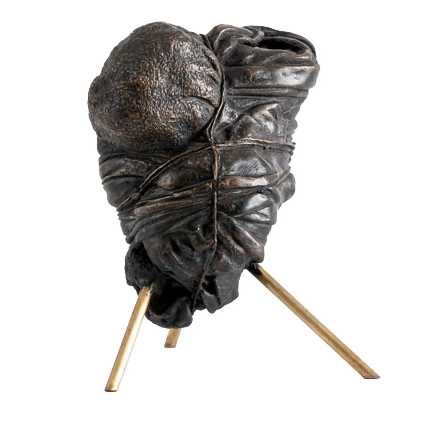 Forged in lost-wax cast bronze with a black patina, this piece resembles a heart bound by strings—a sanctuary for emotions to flourish. Step into my safe space, an invitation to express and connect. Wanderart metal-cast artworks are all hand made, therefore dimensions and weight may vary.