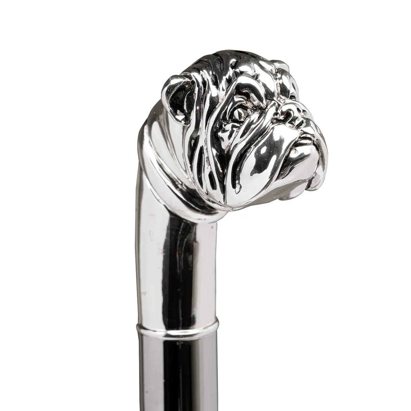 This handcrafted shoehorn coming with a branded case brings strikes with its ornamental flair. Featuring silver-finished brass rings, the glossy, black-lacquered beech shaft and the silvery ABS paddle are topped by a luminous handle, shaped like a bulldog’s head and crafted of marble powder dipped in sterling silver. An integrated fabric loop placed along the grip allows for practical hanging wherever desired.