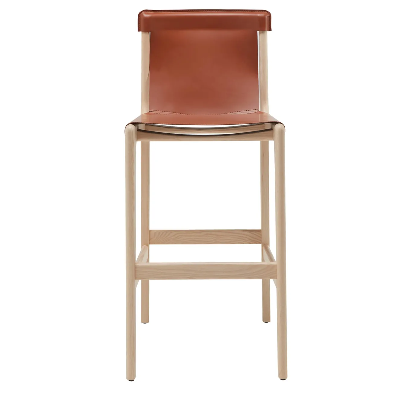 Burano bar stool 30″ is made of ash wood. The double layer of mid-grain leather is the distinctive feature of this collection, which is perfectly suited to domestic environments such as dining rooms, but also to contract environments. The mid-grain leather is a structural part of the collection: the underlying canvas makes the seat resistant, facilitating comfort and functionality that extends also to the slightly inclined and welcoming backrest.