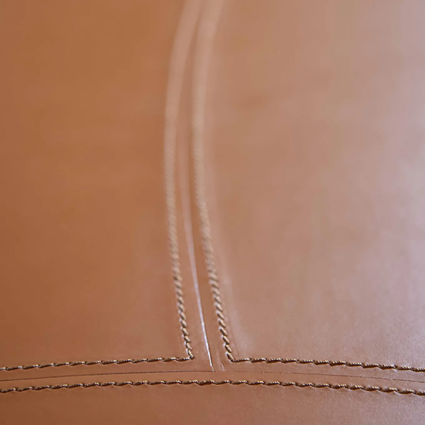 The Butterfly desk has a folded sheet metal base covered in leather and the top is made in leather with seams. Modesty in bronze lacquered sheet metal. Please, ask the Concierge for further information and options.