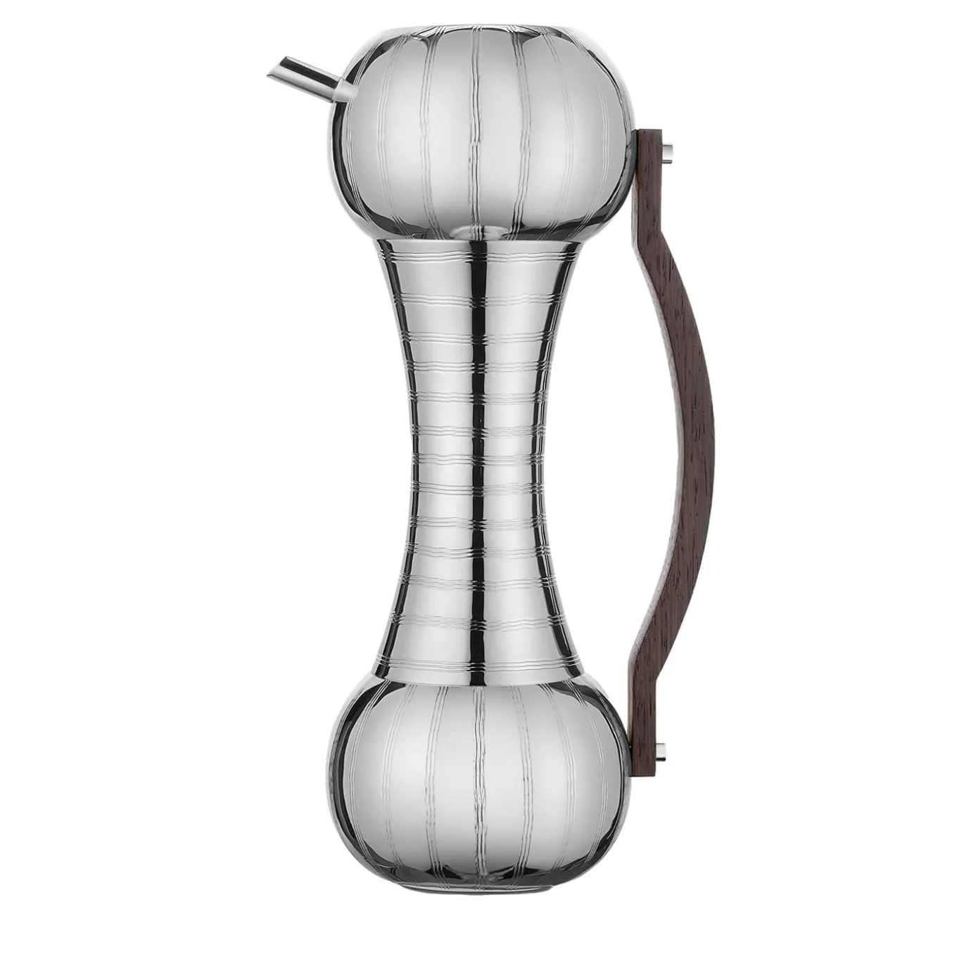 An eccentric and harmonious silhouette playfully inspired by a cockatoo and fashioned of gleaming silvery-finished brass defines this exclusive pitcher. Featuring a practical shaped wedge handle with the purpose of evoking poetic Eastern scenarios, it flaunts ridged detailing achieved as a result of a meticulous hammering process minutely achieved by hand. A singular piece sure to elevate any modern table setting.