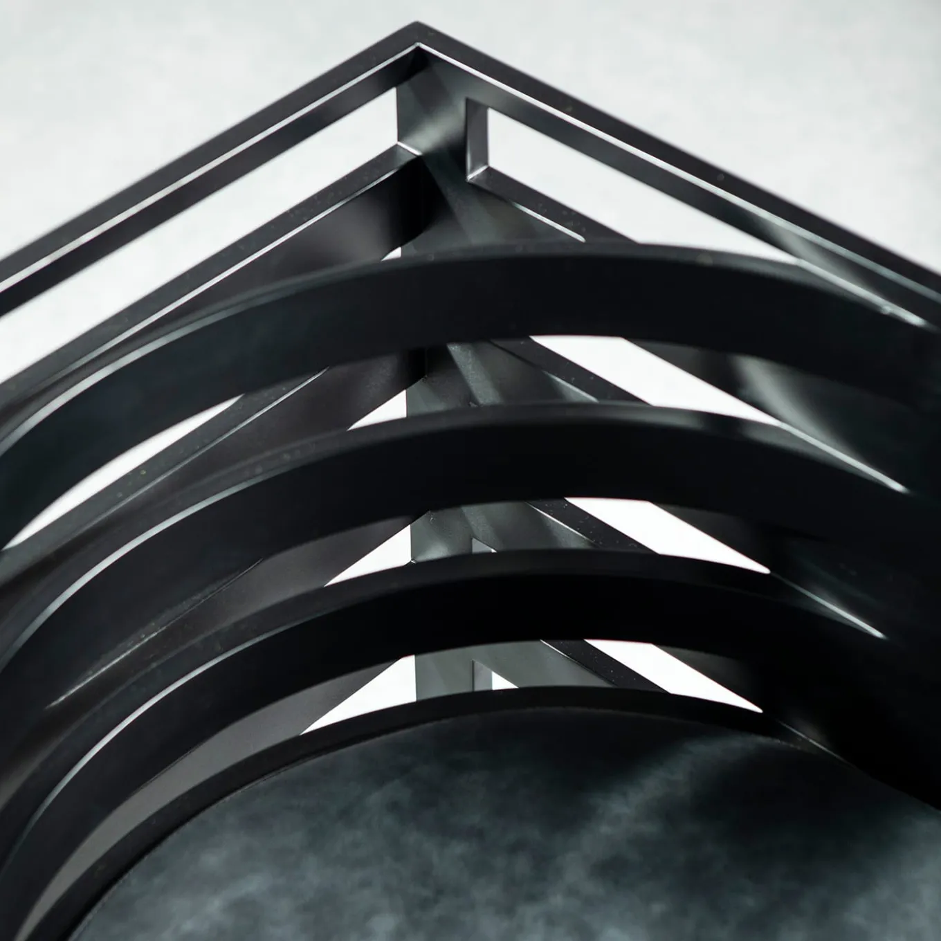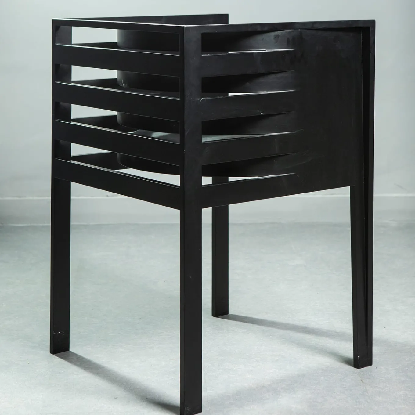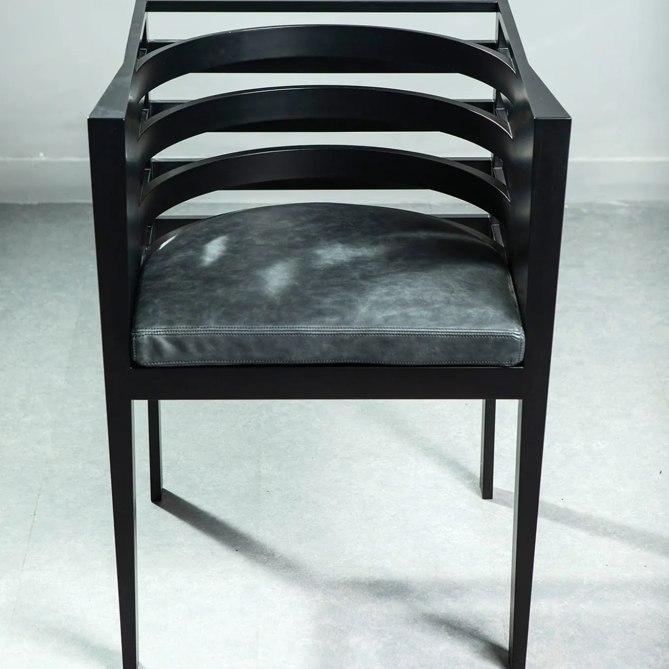The refined chair features a structure made from steamed beechwood with a matte black lacquered finish, paired with a comfortable cushion in matte black eco-leather. Its sleek design and sustainable materials make it a stylish and versatile addition to modern interiors.