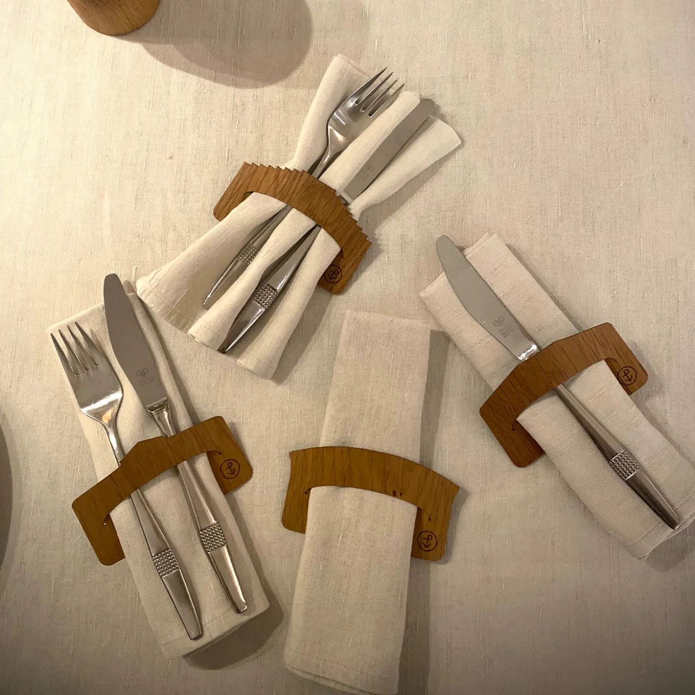 Deceptively simple in their shape, the twelve napkin holders comprising this set celebrate the iconic profiles of Venetian bridges, bring back the suggestion of admiring them from a steamboat sailing through the Canal Grande. Each piece is handcrafted from flexible wood recycled from pile moorings from the Venice Lagoon, allowing to host napkins in a genuine “piece of Venice”. A set of four coordinated placemats is also available upon request.