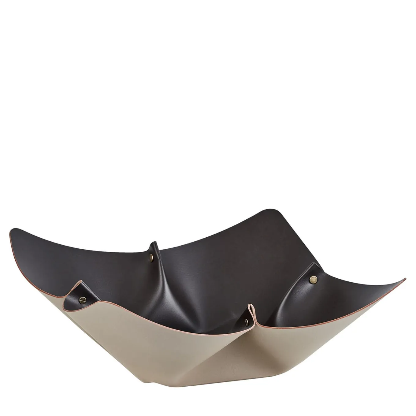 This fruit bowl, designed by Ekaterina Borovkova, resembles a leather flower, serving as both a unique decorative element and a functional item for refreshments. The cappuccino and chocolate color scheme adds a sophisticated touch, making it a stylish addition to any space.