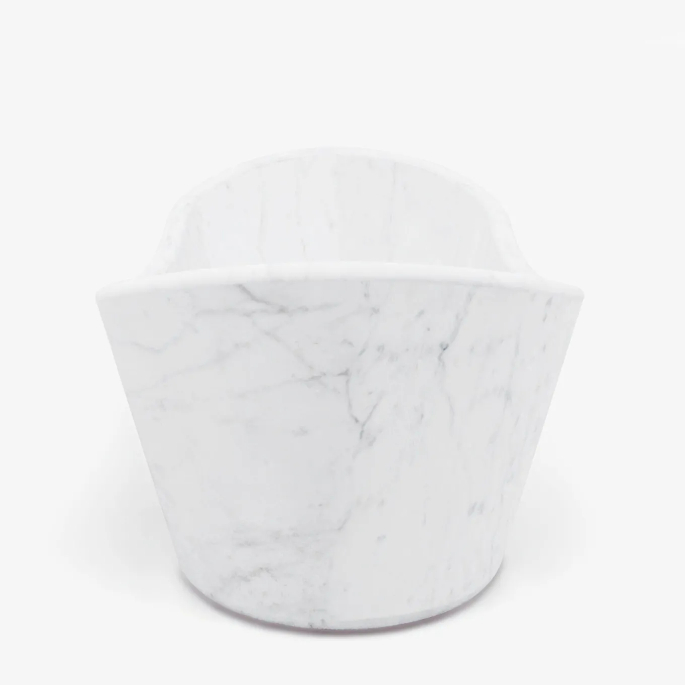 A sculptural and enveloping bathtub carved from fine Carrara white marble, featuring a deep, rounded form with smooth, overflowing edges. Its generous silhouette invites relaxation, while the polished surface is treated with stain- and rain-resistant products for lasting beauty. A statement piece that blends timeless elegance with refined craftsmanship, ideal for luxurious bathroom interiors.