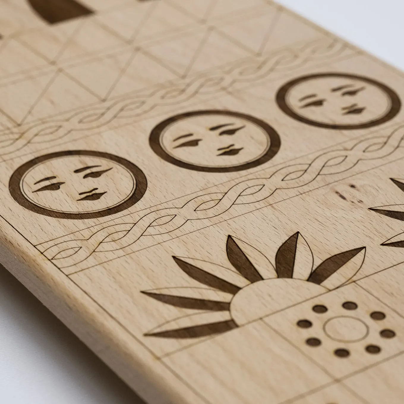 The motifs of the traditional Sicilian wooden cart (“carretto”) are deconstructed and repeated in a delicate brown pattern on the surface of this elegant cutting board. Designed by Gabriele E.M. D’Angelo, this piece is versatile and refined, made using solid beechwood, laser-cut, and skillfully finished by hand. It can be used to serve a variety of food bites, from savory to sweet.