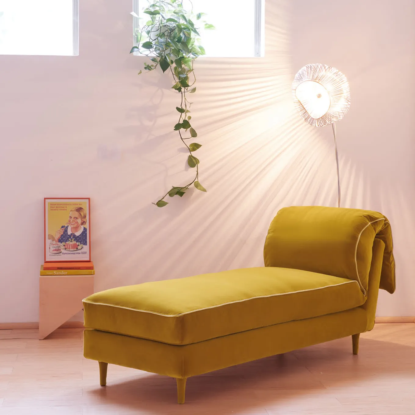 This harmonious and elegant daybed, designed by ddp Studio, proposes a plush design with a fold-up back cushion to enjoy moments of authentic relax. Raised on four upholstered feet, the design comprises a solid beech frame equipped with steel springs and jute belts and is generously padded with latex, cotton, and a layer of goose down. The luxurious upholstery is accented with contrasting piping. Entirely Italian handmade with 100% natural and biodegradable materials.