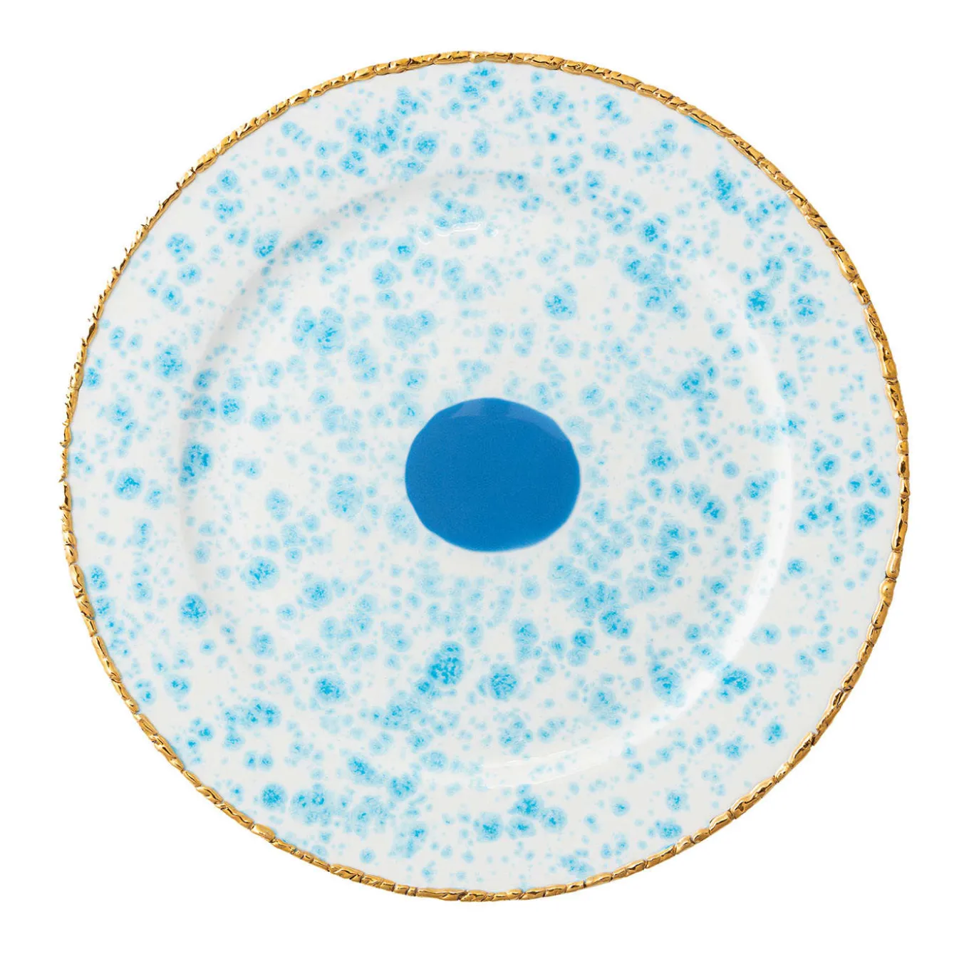 This Rim Charger, characterized by a Craquelé Edge, is entirely hand-decorated. Small imperfections, subsidence, and ripples of the surface are deliberately present and they are a feature of the product, proving the hand-made manufacturing procedure.