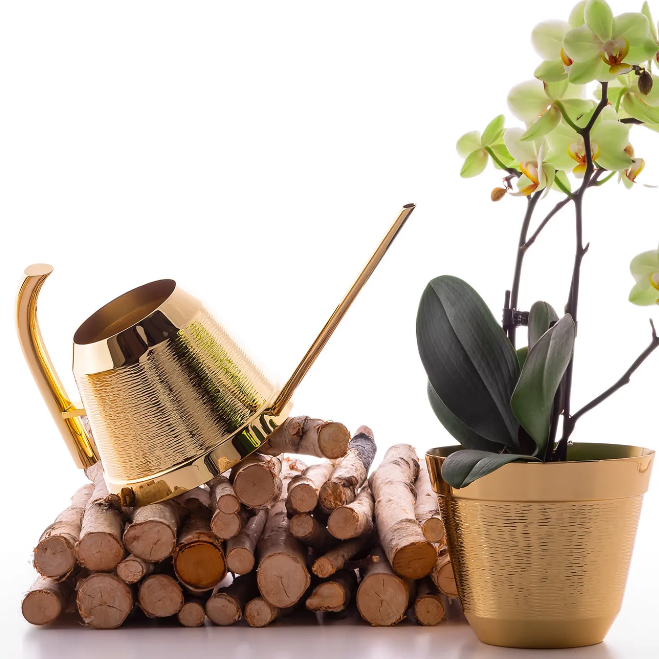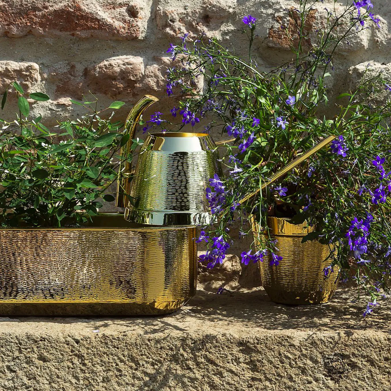 This elegant watering can is fashioned from a brass sheet with tubular brass sections for the spout and handle. The body is turned and subsequently hammered along the entire central body. The handle and the spout are molded using heat and then welded together. Once polished, the watering can is finished with a protective varnish for a timeless effect. Part of the Zanetto collection for the home garden, this can is a useful and delightful object to display in a modern or traditional home.