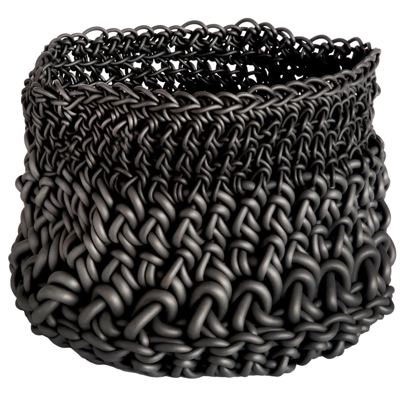 Part of the Cilindro Collection of cylindrical, hand-crocheted neoprene baskets, this gorgeous design will make an iconic addition to both indoor and outdoor contemporary decors. Tall and rounded, it is comprised of threads of three different thicknesses (12mm, 8mm, and 4mm) that gradually get more thin towards the top. Available in various sizes and colors, please consult the Artemest catalog for available options.