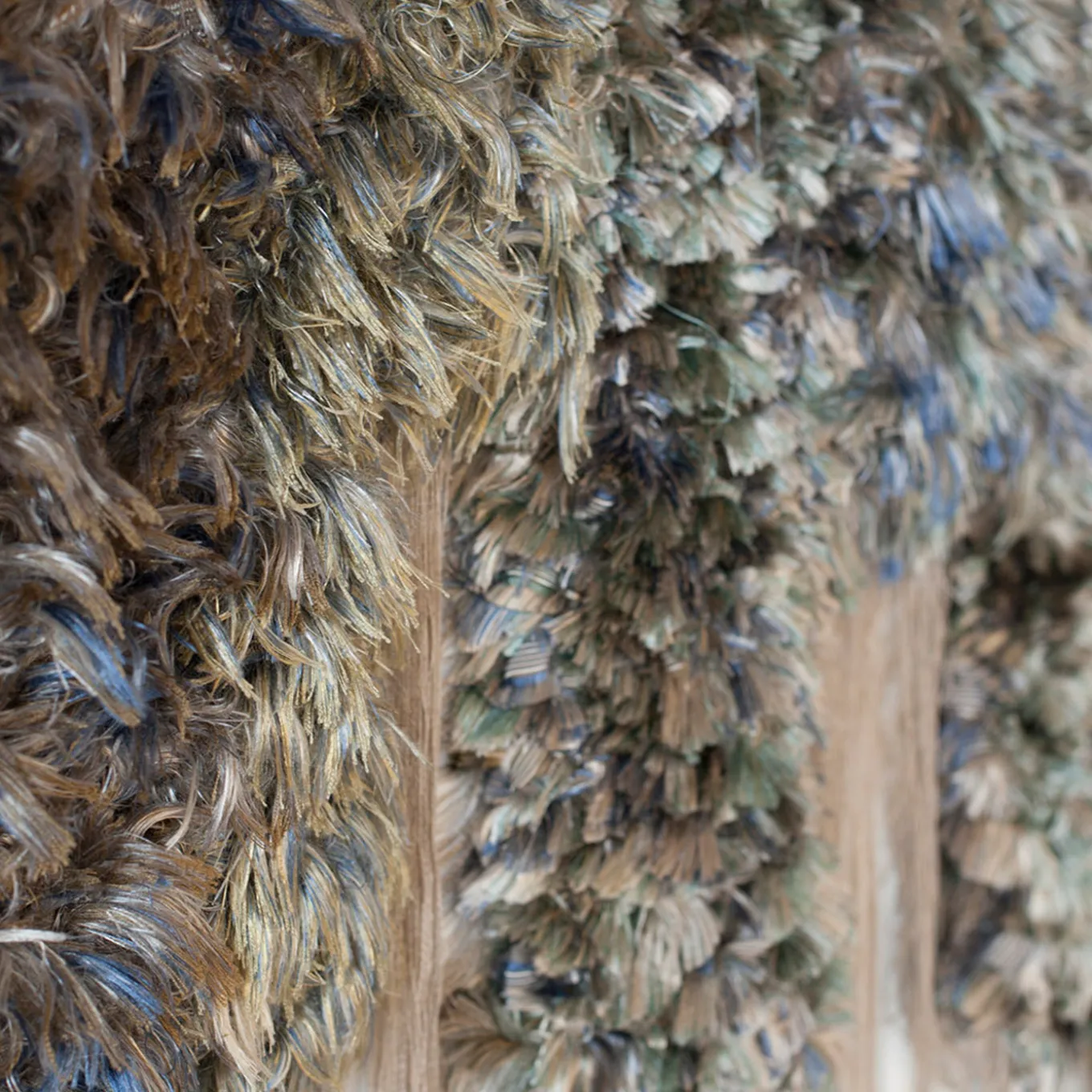 This limited edition piece is full of unconventional appeal. The dynamic arrangement of threads and fibers creates a kaleidoscope of colors and textures reminiscent of those of the ocean. Presented at MIA PHOTO FAIR in 2021, during first edition of “Parallel 2021 Design & Photograpy” with the FLIRT installation embracing feminist empowerment. Features a slot to insert a hanging rod, not included in purchase.