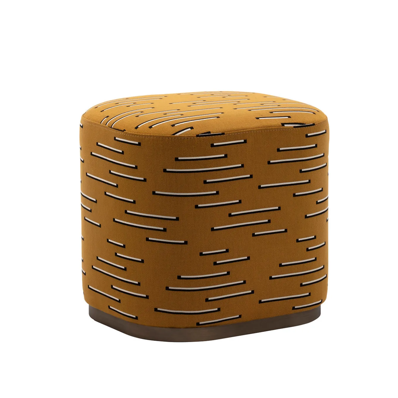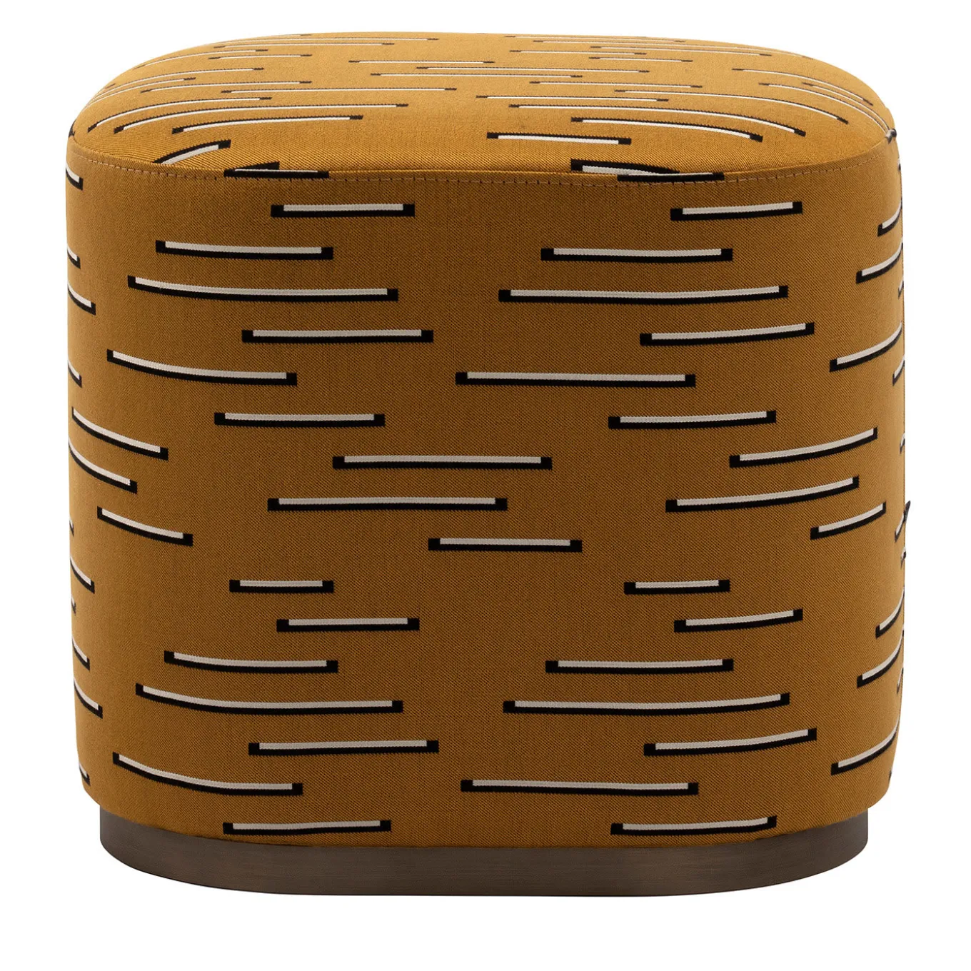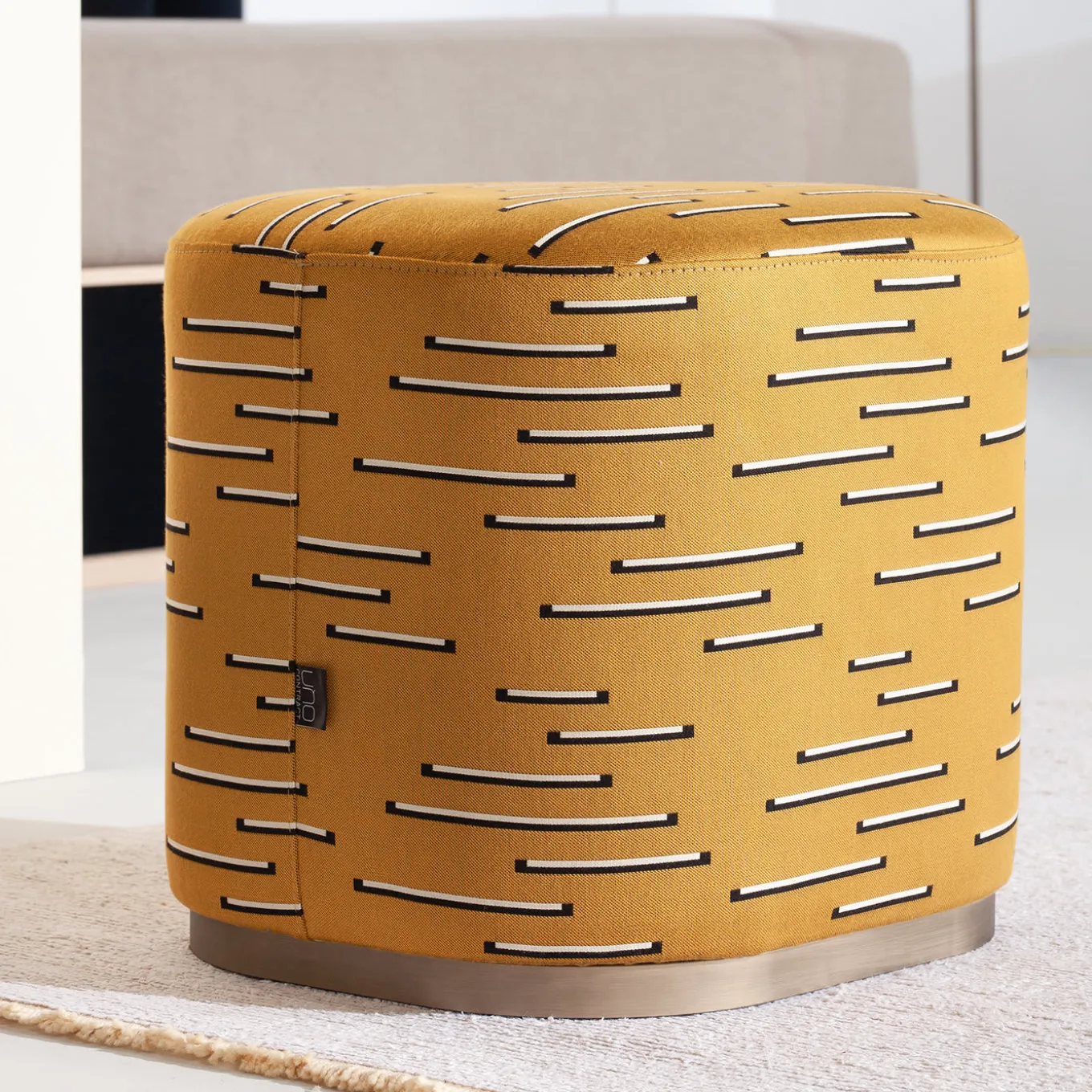 This simple pouf is capable of transforming any room with its charming yellow jacquard fabric cover, providing an all-in-one solution as a seat, footrest, and occasional table without cluttering the interior. A stylish accessory for a modern home, the polyurethane padding covers the solid wood frame to soften the cube shape raised on a brushed brass-finished platform base with nylon glides to slide easily over carpeting, tile, or hardwood floors without leaving marks. Contract and commercial certifications available upon request.