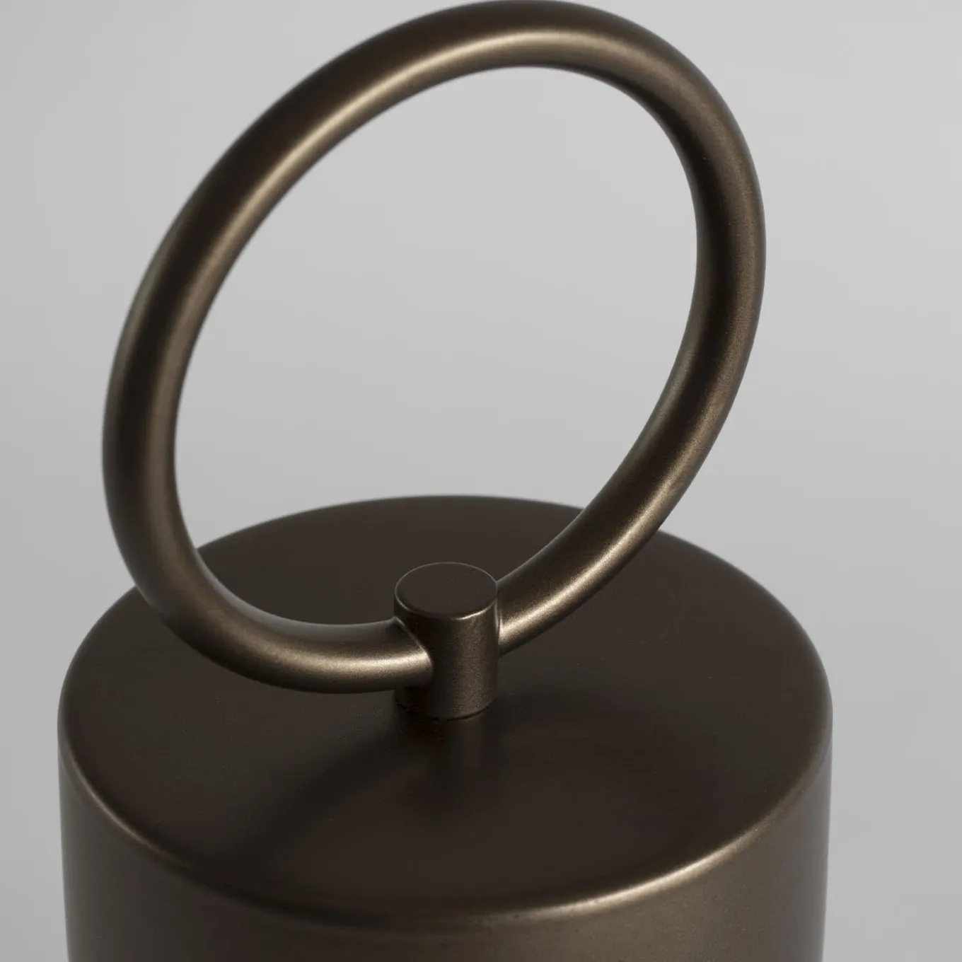 The Claretta portable lamp features a lacquered bronze frame paired with a transparent ribbed plexiglass diffuser that enhances light diffusion. Its compact design includes an integrated circular handle, enabling easy portability and versatile placement. Suitable for both indoor and outdoor use, this lamp combines functional lighting with an elegant aesthetic, balancing modern technology with refined materials for a sophisticated ambient glow. Designed by Chiara Caberlon. Additional finishes are available in the Artemest catalogue.