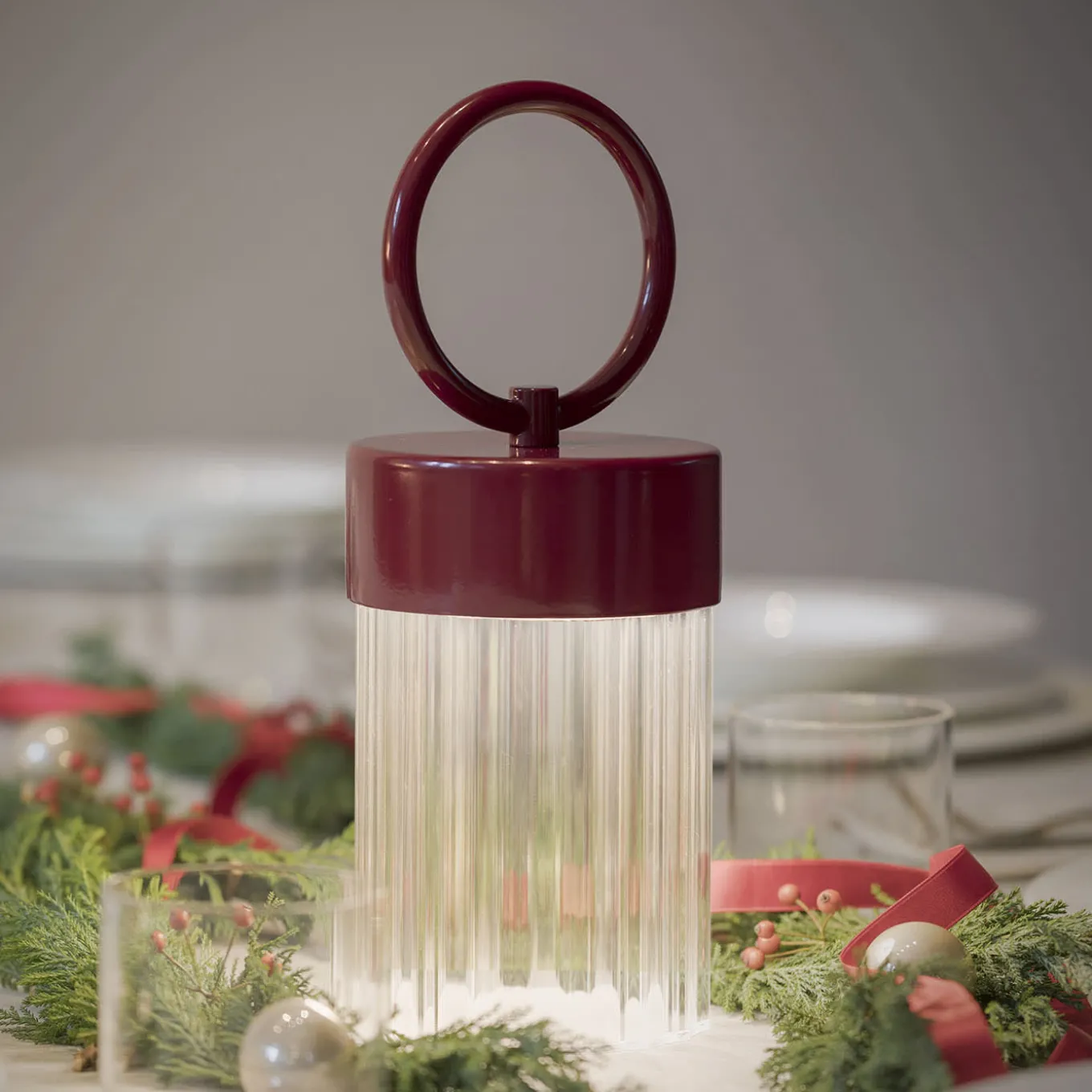 Designed by Chiara Caberlon, this refined portable lamp combines elegance with modern functionality. The deep red frame adds a bold yet sophisticated touch, while the ribbed diffuser creates a delicate play of light. Certified “CE” for quality and safety, it offers versatile illumination for any space, perfect for contemporary interiors seeking a stylish and distinctive accent.