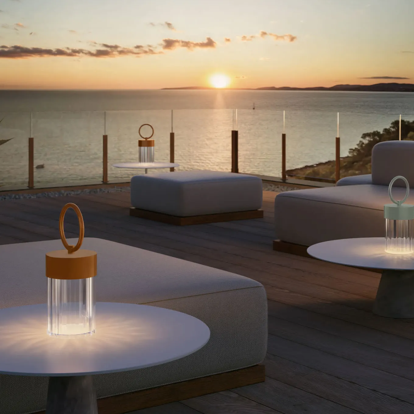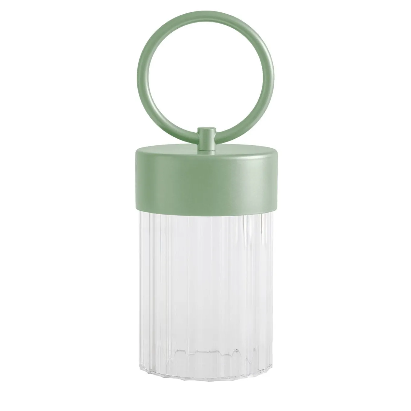 The Claretta portable lamp by Chiara Caberlon features a sage green frame paired with a transparent ribbed plexiglass diffuser. Designed for portability and ease of use, this medium-sized lamp offers versatile lighting with a contemporary aesthetic. Its battery operation allows for flexible placement without the need for a power outlet, making it ideal for both indoor and outdoor settings. The ribbed diffuser adds texture and diffuses light softly for a pleasant ambience. Additional finishes are available in the Artemest catalogue.