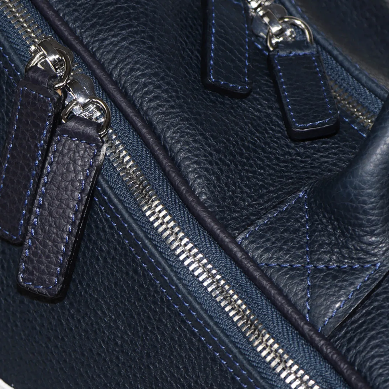 Entering the tennis club with timeless style is possible with this fine tennis bag. Handcrafted of fine water-resistant leather in a combination of red, blue, and white, it offers ample space for different equipment thanks to compartments that add to a couple of pockets each welcoming two rackets. Completed by an outer pocket, it comes with an adjustable strap. Customizable with one’s initials.