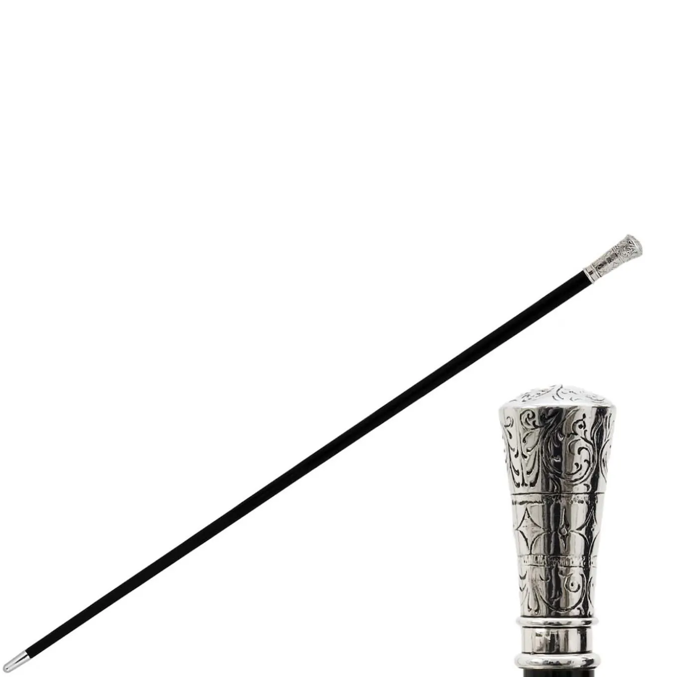 This is the perfect choice for those who are looking for a classic yet oustanding cane. Handmade in Italy, this cane features a 92-cm long wooden shaft, a brass tip with rubber and an engraved silver-plated resin handle.