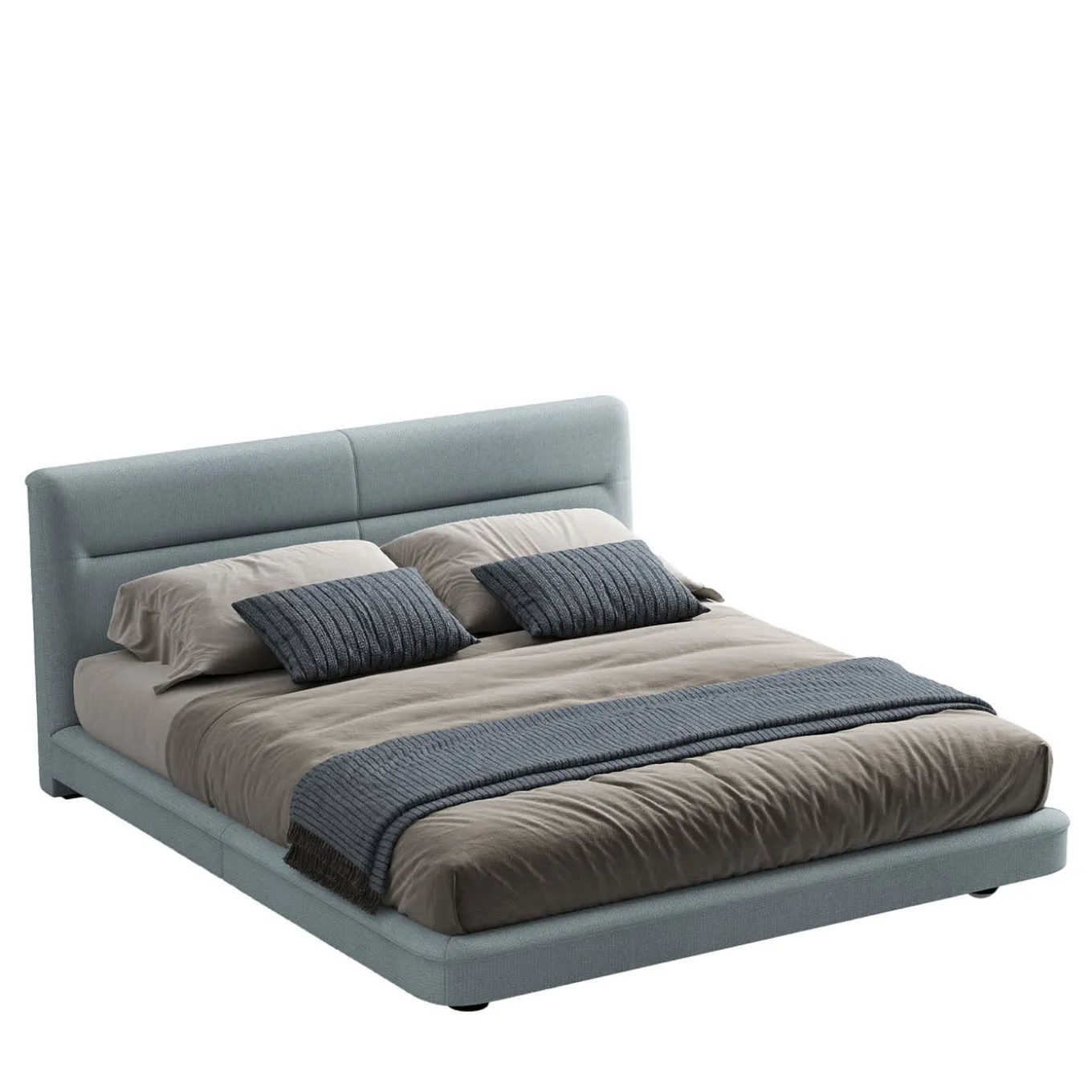 Experience comfort with a bed upholstered in elegant fabric. Ideal for contemporary bedrooms, it combines high-quality materials with a modern aesthetic. Elevate the space with this elegant and comfortable bed. Decorative pillows and mattress are not included.