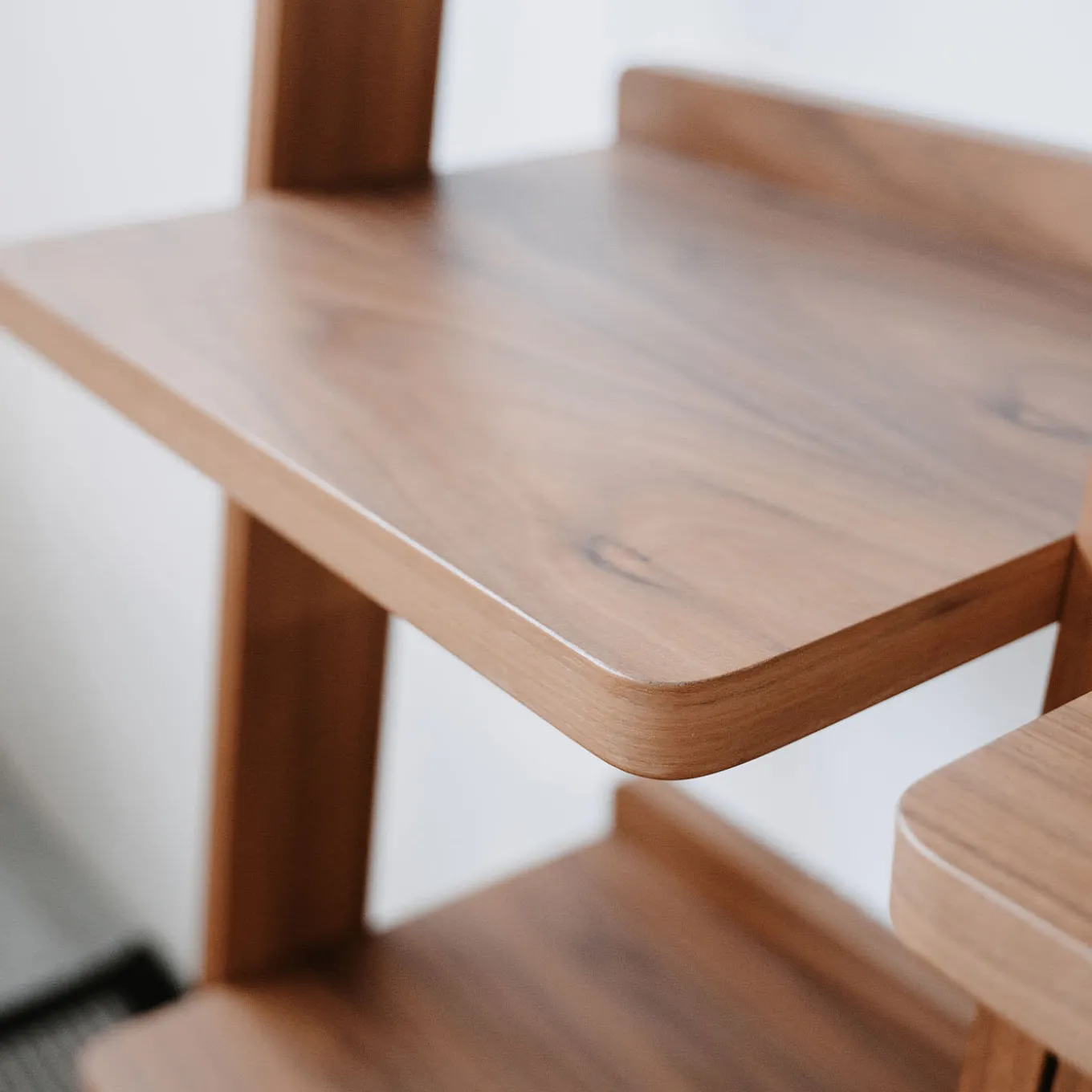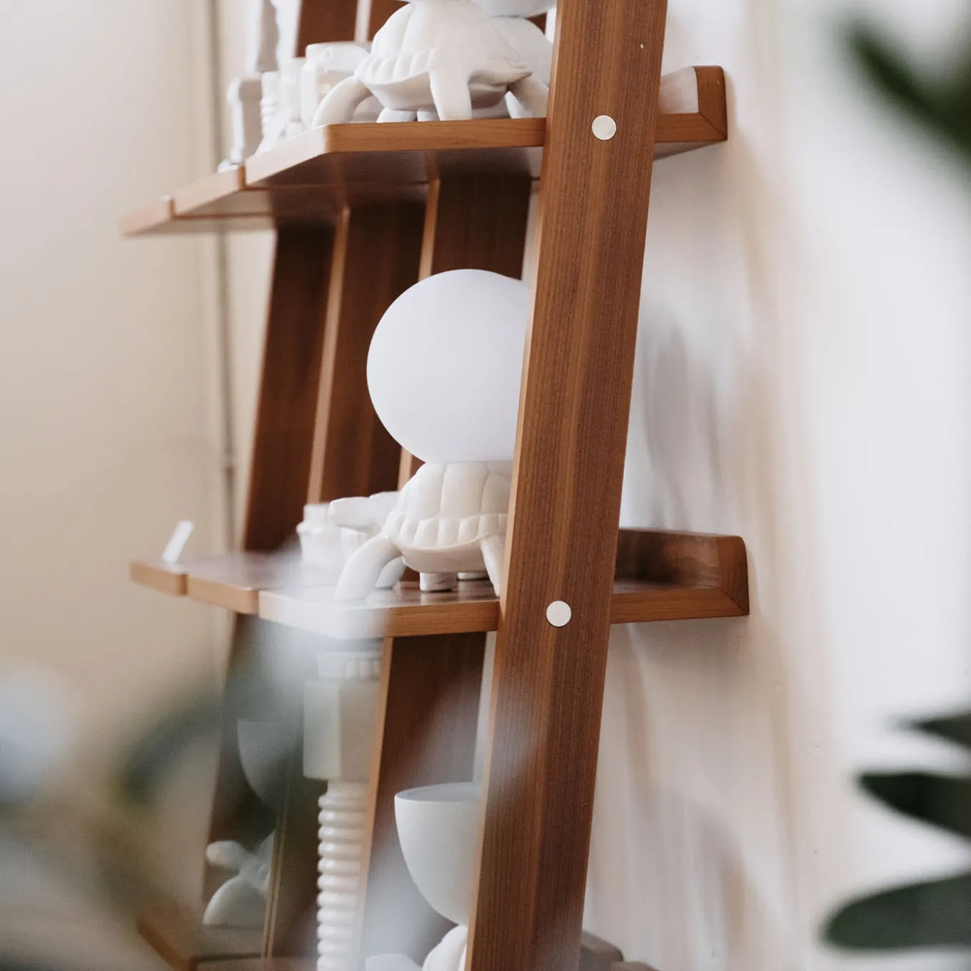 Climb is a ladder bookshelf in wood. Available in Canaletto Walnut, it is a decorative ladder bookcase that comes with 5 shelves. Climb by Montina is ideal for showcasing wine bottles, books, glasses, or anything else that deserves the best piece of furniture as a display.