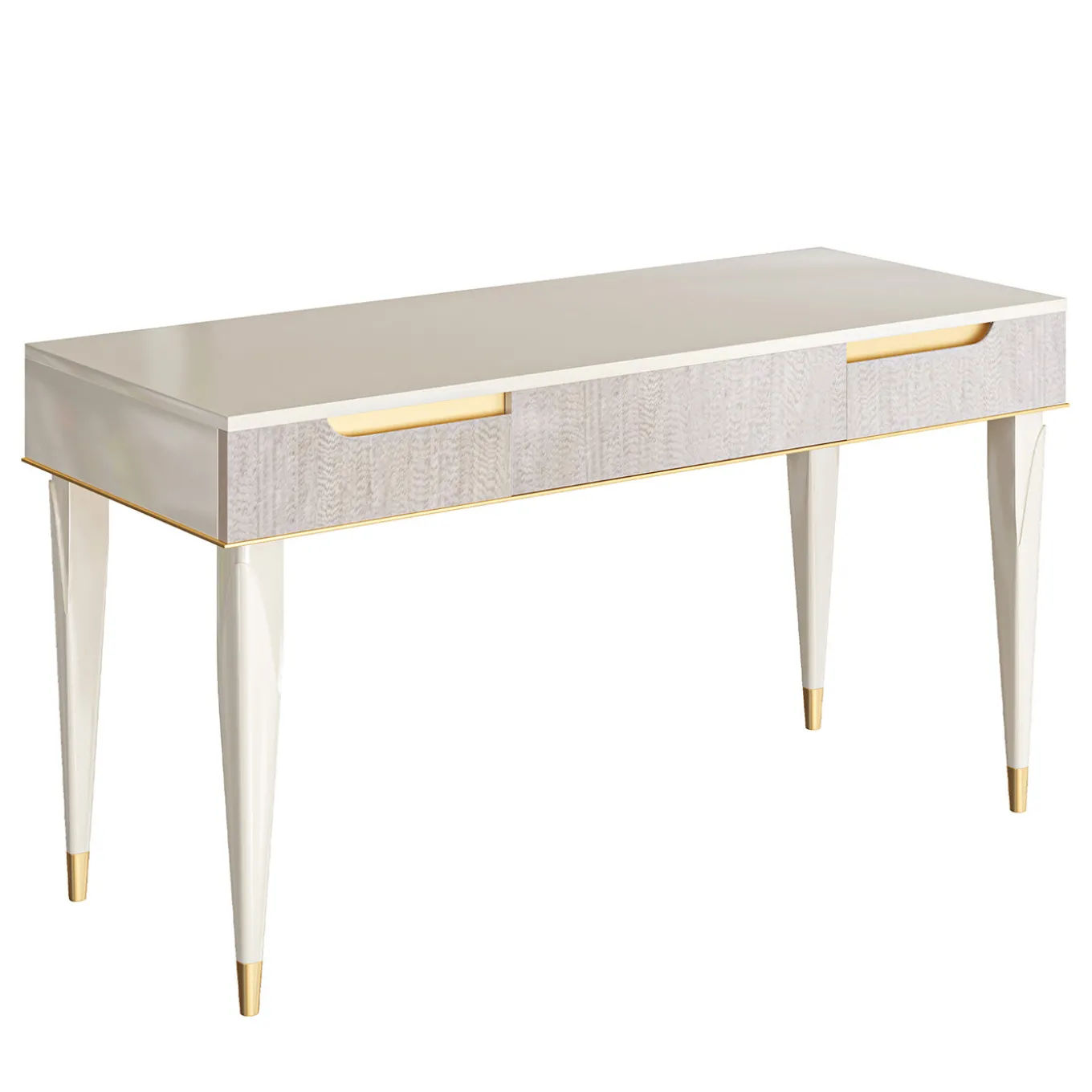 Defined by clean and utterly refined lines, this spectacular console will be a gorgeous entryway statement piece for an elegant contemporary interior. Crafted of ice white-lacquered wood, it features four sturdy, straight legs supporting a solid top with three drawers enhanced with a natural eucalyptus veneer. Please refer to the Concierge for further details on finishes and materials.