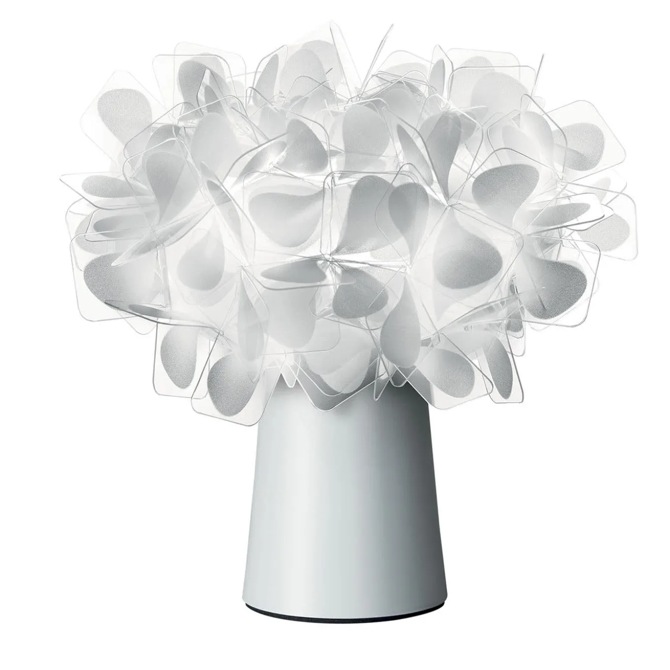 Here offered in a compact battery-powered and indeed rechargeable version, this floral-inspired table lamp boasts a poetic and practical design that is perfect to serve as a romantic centerpiece for special dinners, either outdoors or indoors. The dimmable LED circuit lasts up to 60 hours on if set at minimum intensity level. Golden and black color options are also available.