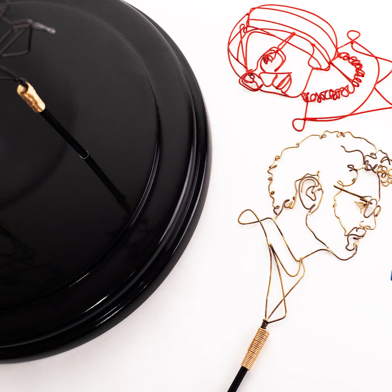 A tailor-made design of unprecedented style, the Cloche Family statuette can be customized with the profiles of your loved ones, people, and pets alike, from one to up to seven subjects. Minutely handcrafted of bronze wire, it is enclosed in a blown glass cloche with a glossy black lacquered wood base. Profilo will provide a graphic preview for customized projects, please inquire with the Concierge for further details.