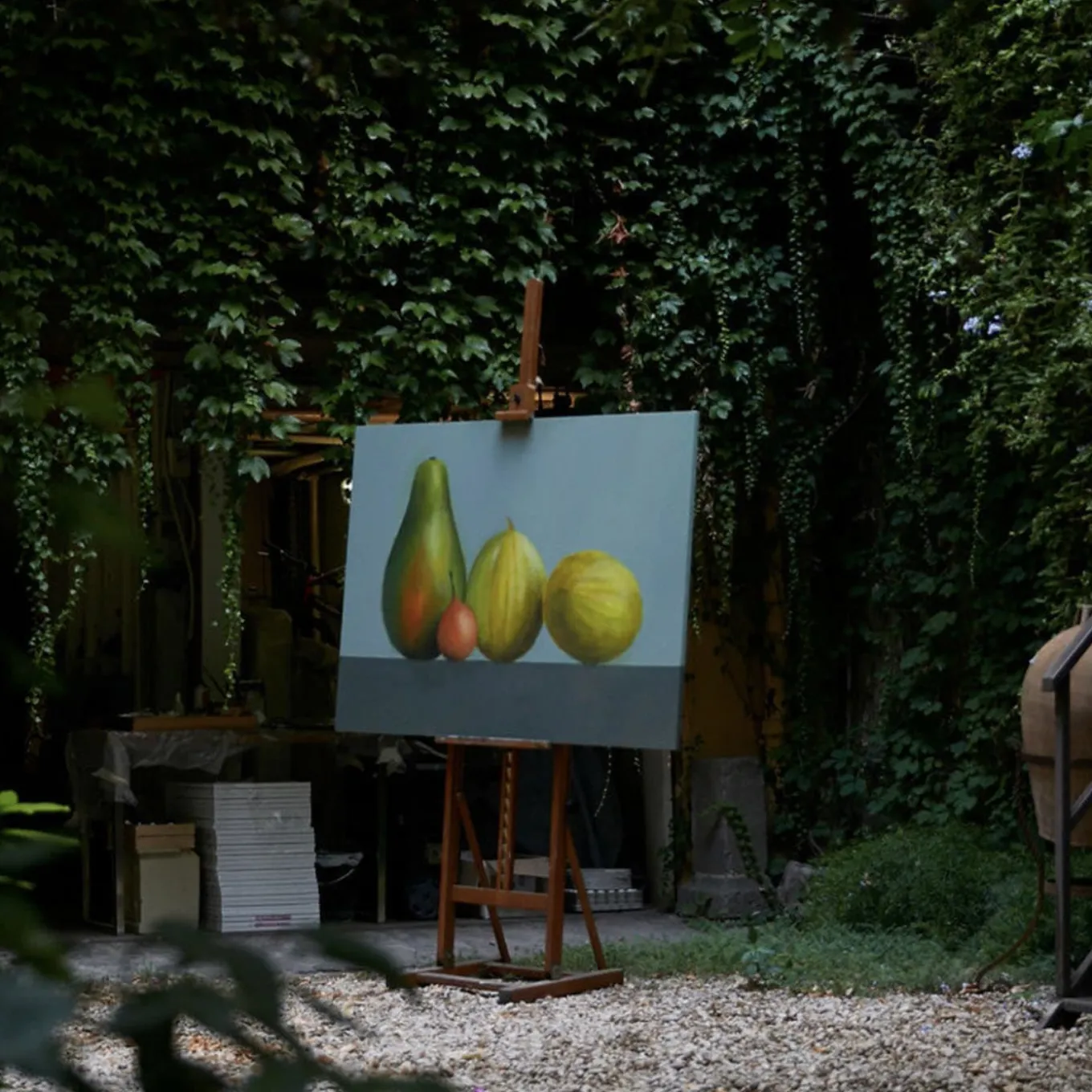 The material of the technique (oil painting) is complex in its processing, made of overlapping layers, glazes, slow drying times, and different application methods that allow shades, the play of opacity and sharpness to which the contemporary eye is almost no longer used; complexity to which the artist wisely gifts new possibilities, using an antique technique in a contemporary key, while respecting, with ability and humility, its slow and complex processes.