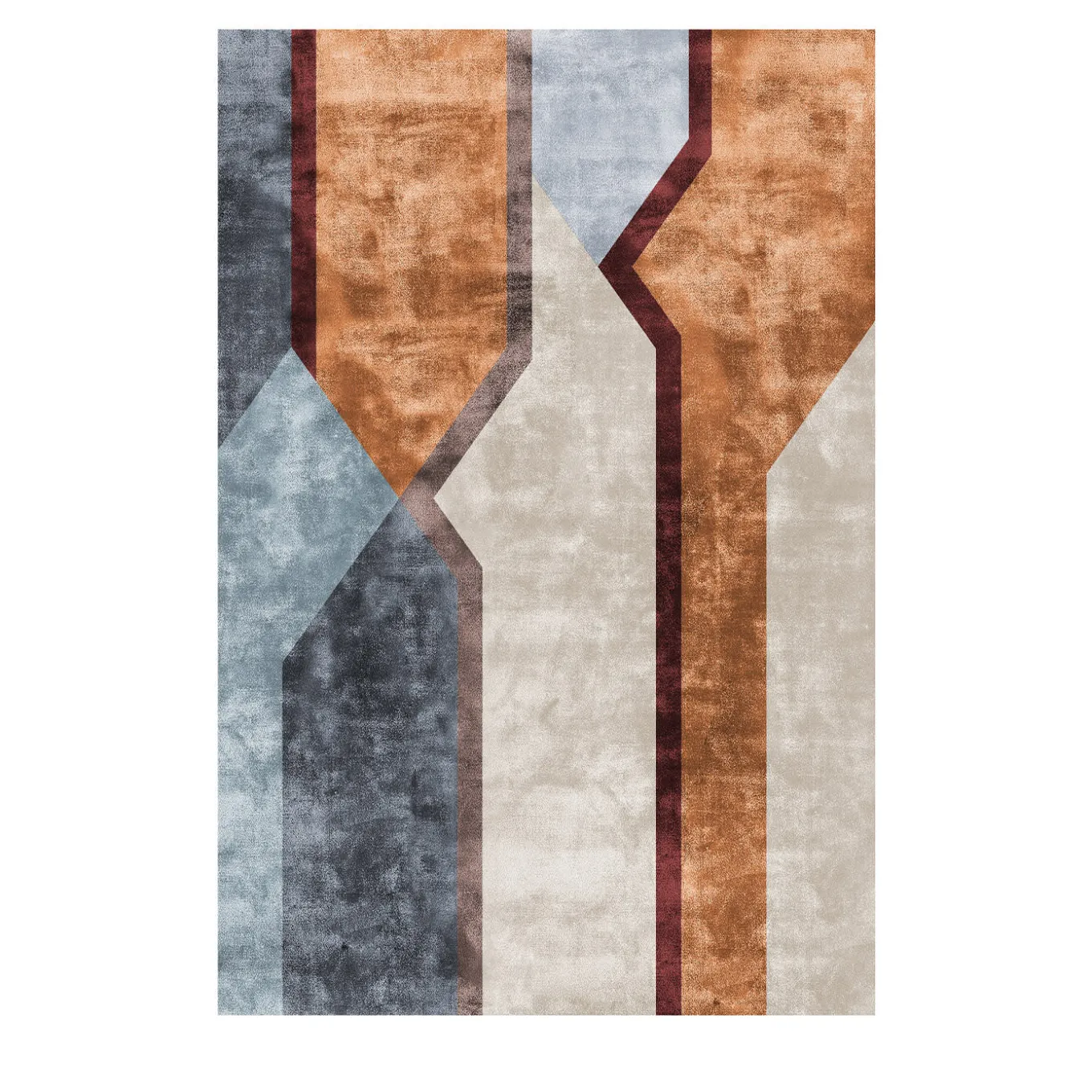 This exquisite rug, hand-knotted in Nepal, is distinguished by a captivating geometric pattern with contrasting cool and warm tone softened by a delicate beige tone. Crafted with bamboo fibers following local methods, it features a warp and weft in fine cotton. The fleece measures about 8mm high. Size can be customized on request to the Concierge.