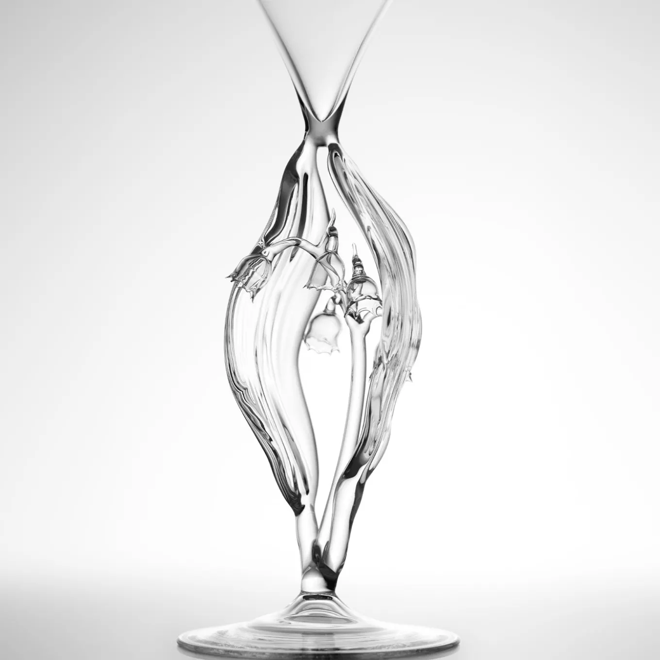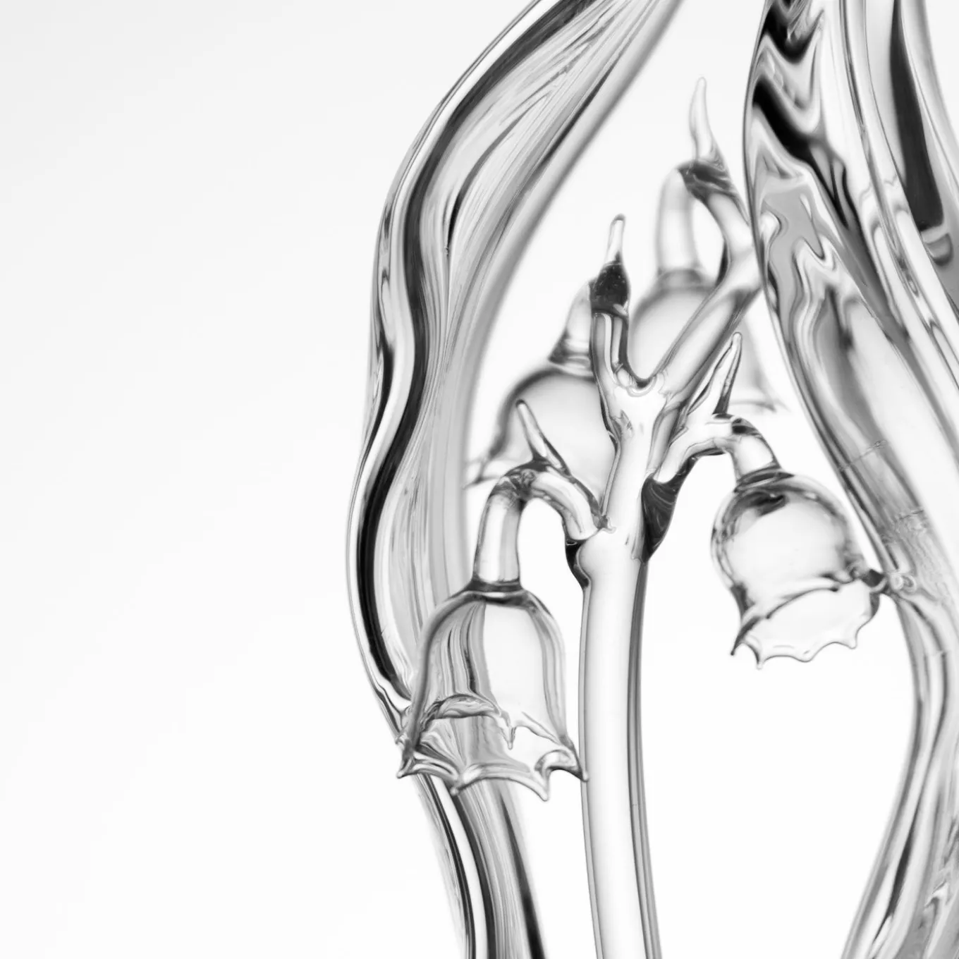 This glass belongs to a collection of 21 unique pieces, each inspired by a different botanical species and reimagined by Simone Crestani from archival Fratelli Toso drawings. Shaped in transparent glass through the flame of the lamp, it evokes a secret garden where petals, stems, and leaves come to life. Each glass is one of a kind—an object that is both functional and artistic, solid and fragile, intimate and universal. Like a flower in bloom, it invites us to contemplate its beauty or raise a toast to the inner garden we all carry within.