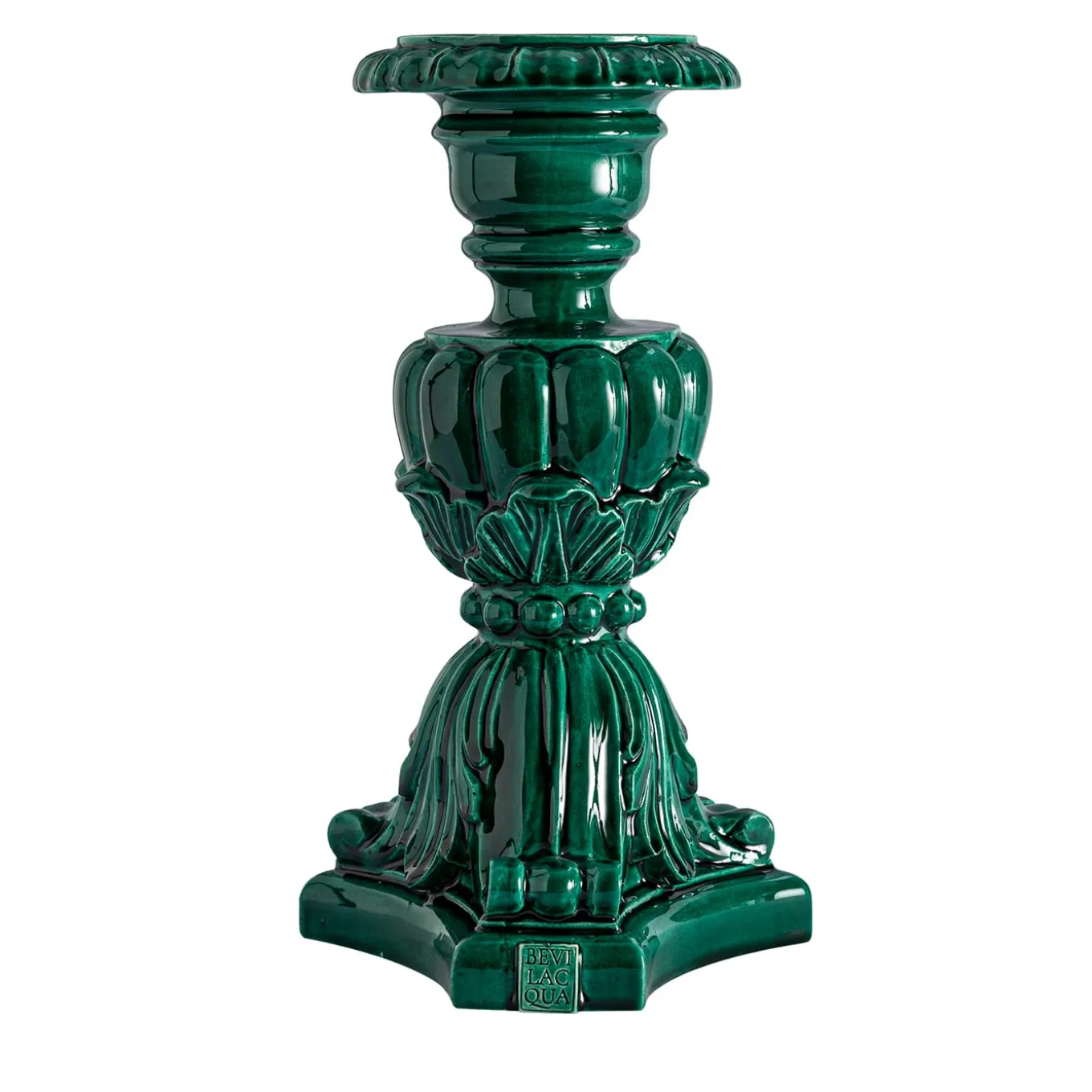 Crafted from ceramic by artisans steeped in local traditions, this candelabrum is a unique sculptural piece that elegantly adorns any space as a tabletop centerpiece. Daring geometries intertwine with sinuous curves in a dance of luminosity, it captures attention with ornate baroque motifs. Transforming any room into a refined, enchanting realm, this artwork emanates an aura of sophisticated allure.