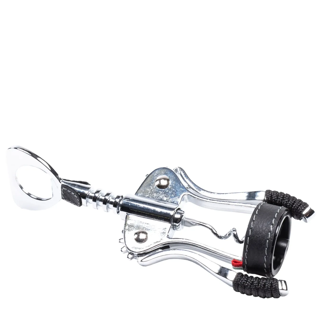 This corkscrew shows of nautical-inspired collections by Marricreo aim to lend exclusivity up to the smallest accessory. Black eco-leather and rope inserts accent the design fashioned of chrome iron that will be an impeccable pairing for its glacette stand and glasses holder counterparts. The simple gesture of opening a bottle of prosecco will turn into an occasion to hold a precious artisan object.