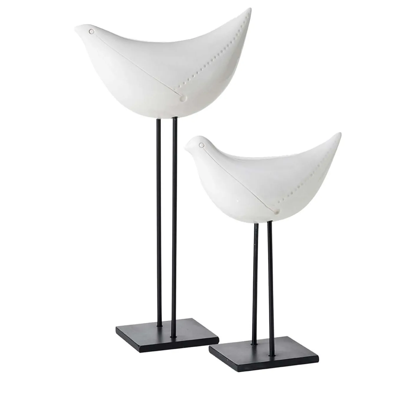 Designed by Aldo Londi as part of the Arkitectura Collection, this set of two white birds is a stunning decorative addition to any interior. These classic mid-century sculptures boast a white glaze overtop the white clay and have an iron base that evokes the long legs of a seagull. The bases have a height of 27 and 35 cm with a square support. This exquisitely simple yet highly decorative set makes a thoughtful gift for an art connoisseur.