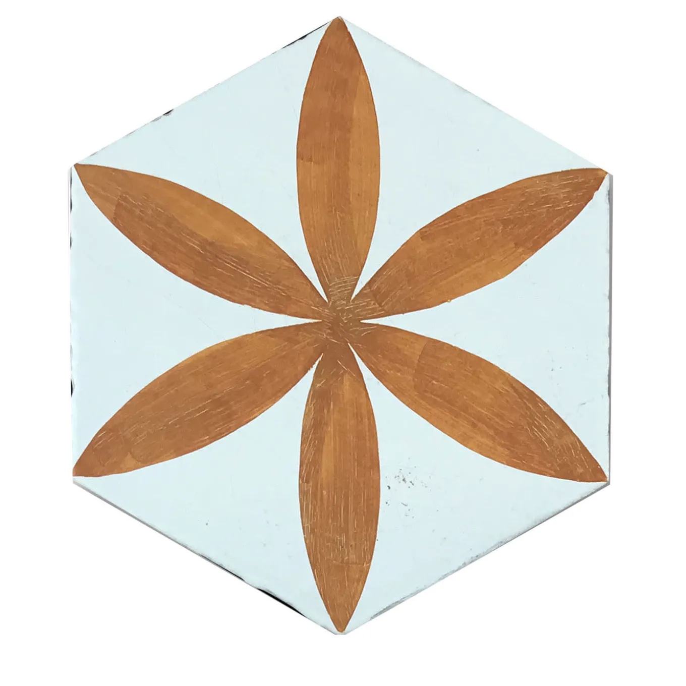 A lively and elegant decorative accent to a modern interior, this gorgeous set of 28 quirky cotto tiles exudes timeless value and sophistication. Boasting and hexagonal profile measuring 20 x 20 x 1.8 cm (LxWxH), each tile is decorated by hand with an orange flower, available in a wide selection of motifs and colors, please consult the Artemest catalog for options.
