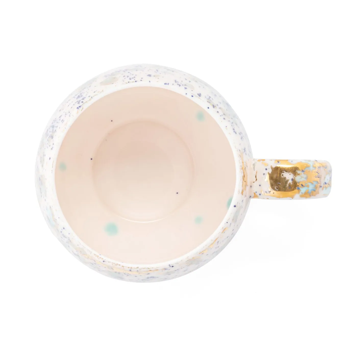 This mug contains 400cl of liquids and is entirely hand-decorated. Manufacturing of this product has been realized with hand-crafted procedures and not industrial. Small imperfections, subsidence, and ripples of the surface are deliberately present and they are a feature of the product, proving the hand-made manufacturing procedure.