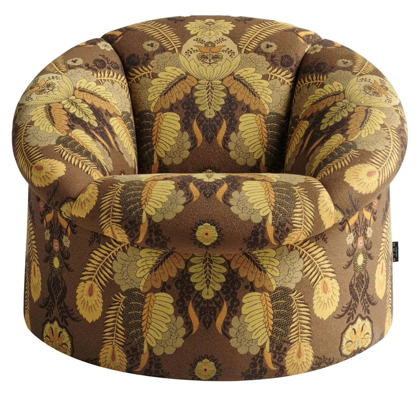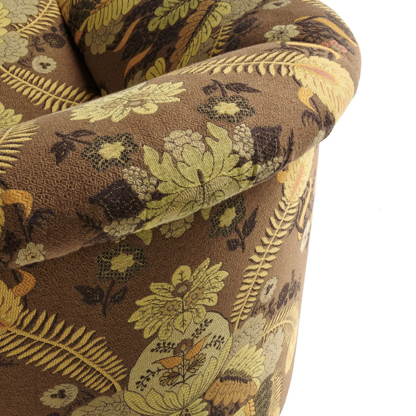 The two founding themes of the fashion Maison Etro are the main peculiarities of the Dahlia armchair, a piece of furniture with lines that take inspiration from Milanese design. Dahlia can infuse a note of harmony and intimacy into any space, pursuing an idea of enveloping and comfortable relaxation. Armchair with structure in solid poplar wood and multilayer pine wood. Seat with elastic webbing and variable thickness high-density expansive polyurethane foam.