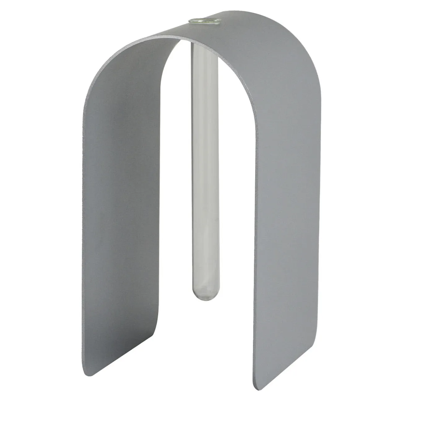 Boasting a minimalist design, this bud vase features a distinctive shape comprised of a tubular glass body enclosed in and supported with an arch-shaped silver-finished steel laminate structure. An exquisite design to enrich contemporary decors, it exudes dynamic movement and delicate sophistication. Available in other colors, please consult the Artemest catalog for options.