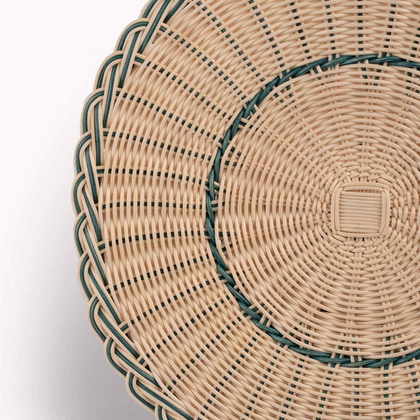 A spectacular showcase of Italian craftsmanship, this placemat is a one-off design of timeless sophistication. Deftly woven by hand from natural wicker, it is enriched with blue details colored with a natural pastel, adding refinement to this unique piece. Please consult the Artemest catalog for other shape and color options.