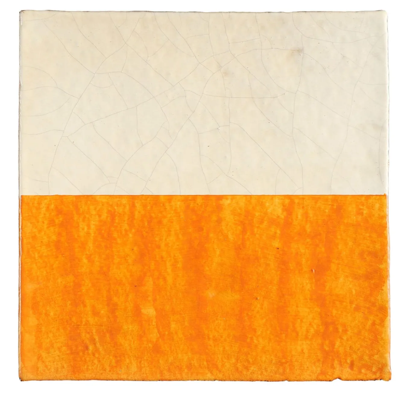 Imbuing a contemporary interior with a playful and original flair, this exquisite set of 25 tiles (1 sqm) belongs to the Dejavu Ficus Indica Collection designed by Luigi Patitucci. Handcrafted of ceramic, it is enameled in an ivory shade enhanced with a cracked effect, and decorated by hand with an orange half. Ideally combined with others from the Find series, please consult the Artemest catalog for other design options. Each tile measures 20 x 20 cm.